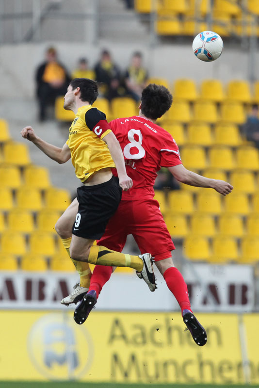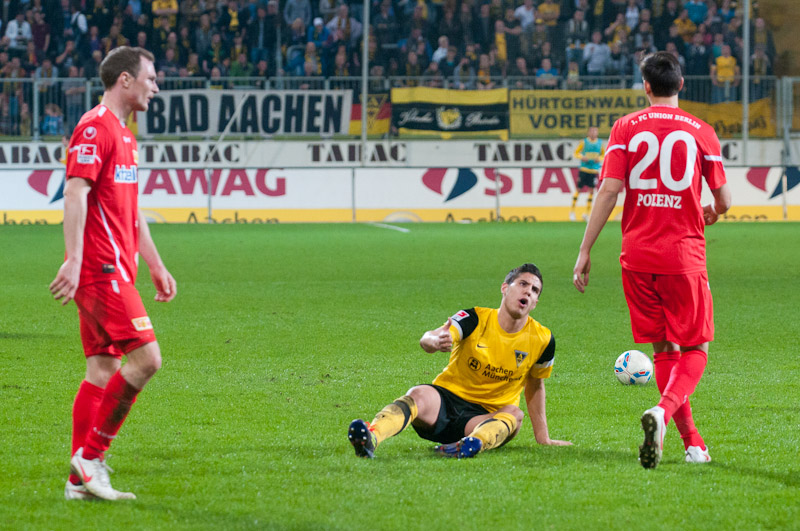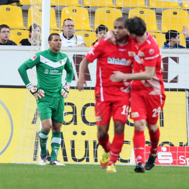 Große Enttäuschung am Tivoli: Trotz eines guten Beginns musste sich die Alemannia am Freitagabend mit 1:3 gegen Union Berlin geschlagen geben und kassierte dadurch die dritte Niederlage in Folge. Den Hausherren gehörten die ersten 25 Minuten klar, mit der ersten richtigen Chance gelang allerdings den Gästen aus Berlin durch Ede die Führung (23.). Weil Gäste-Keeper Glinker wenig später patzte, landete eine Flanke von Achenbach im Netz zum Ausgleich (36.). In der Defensive ließen die Schwarz-Gelben ein ums andere Mal die nötige Sicherheit vermissen, Terodde nutzte dies und traf noch vor der Pause zum 1:2 (41.). Der Wille und die Bemühungen, weiter nach vorne zu spielen, waren bei der Alemannia nach dem Wechsel erkennbar, da hatte Zoundi jedoch bereits auf 1:3 erhöht – gerade mal 30 Sekunden waren da im zweiten Durchgang gespielt.