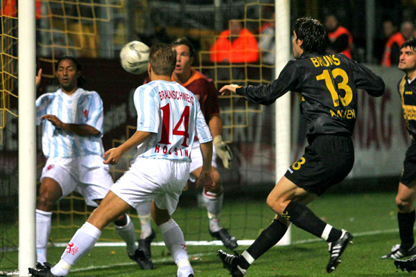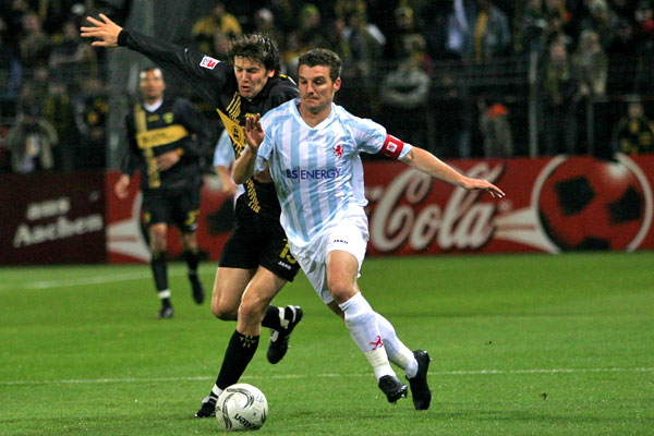 Die Alemannia hatte die Partie begonnen wie die Feuerwehr. Emil Noll bediente Jan Schlaudraff, dessen Linksschuss parierte Stuckmann zur Ecke (2.). Diese trat Laurentiu Reghecampf nach innen und fand am langen Pfosten den Kopf von Noll, von wo aus der Ball an den Pfosten tropfte. Die Nachschüsse von Marius Ebbers und Reghecampf brachten nichts mehr ein. Aber nach dem starken Auftakt konnten die Gastgeber den Druck nicht aufrechterhalten.
