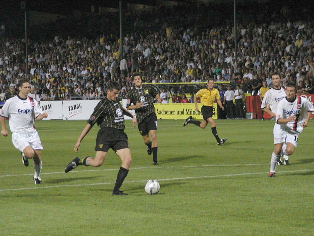 Alexander Huber hatte sich rechts durchgesetzt und an der Strafraumgrenze kam Alexander Meier frei zum Schuss und noch einmal abgefälscht landete der Ball im Aachener Gehäuse. Das war ein Schock für die bis dahin gut spielenden Alemannen und ihre Fans. Die alte Weisheit war wieder eingetroffen. Wer vorne die Tore nicht macht, bekommt meist dann selbst den Gegentreffer.