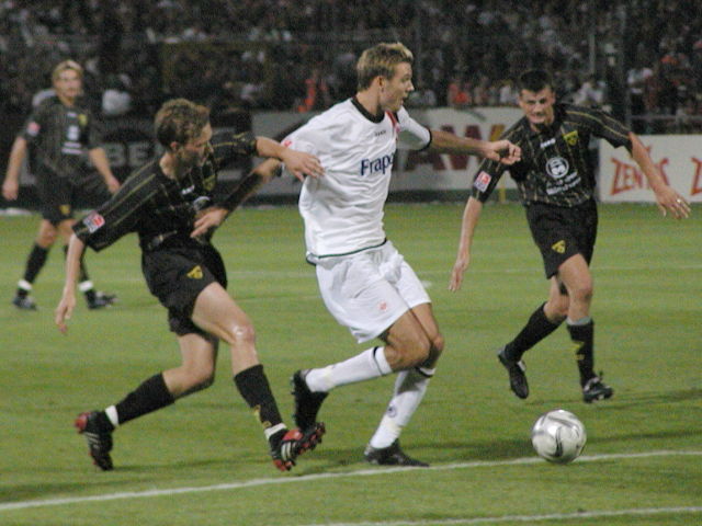 Dr. Felix Brych aus der bayerischen Landeshauptstadt München. Dr. Felix Brych, der am letzten Dienstag 29 Jahre alt wurde, steht seit 1999 auf der DFB-Liste. Bereits nach zwei Jahren stieg der ledige Jurist, der gerade seine Doktorarbeit beendet hat, in die 2. Bundesliga auf. Nach weiteren zwei Spielzeiten und 24 Spielen im Bundesligaunterhaus qualifizierte er sich jetzt als einer von zwei Aufsteigern für die neue Erstligasaison. Dreimal leitete der Hobbymusiker, dessen Heimatverein der SV Am Hart München ist, im letzten Jahr Spiele der Alemannia, alle drei auswärts (Lübeck, Berlin, Bielefeld). Das letzte Spiel auf dem Tivoli unter seiner Leitung fand in der Saison zuvor am 02.03.2003 gegen den MSV Duisburg statt (1:0).