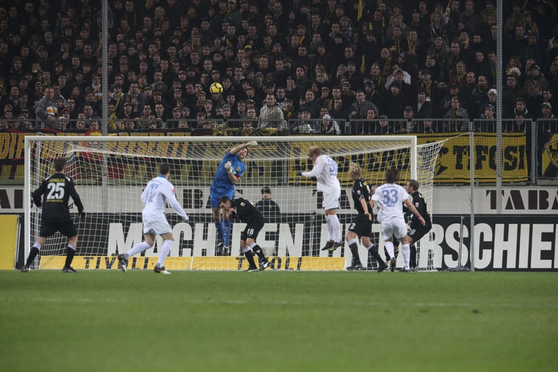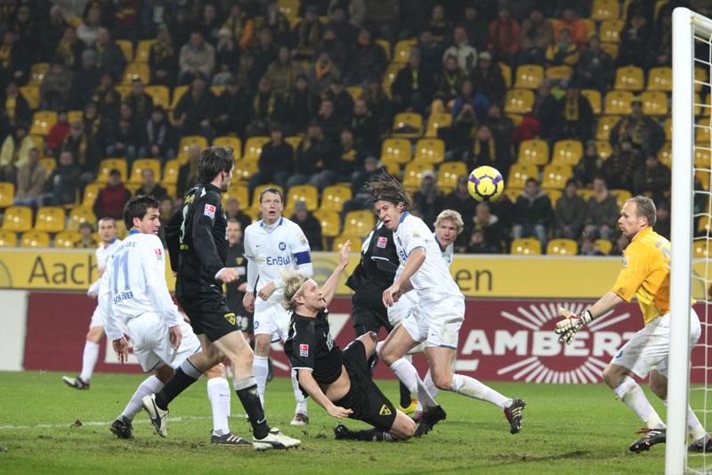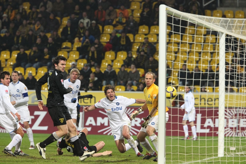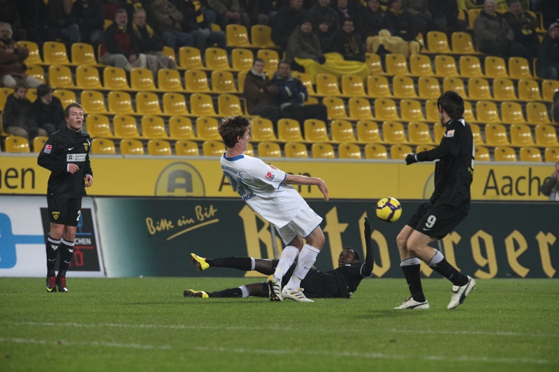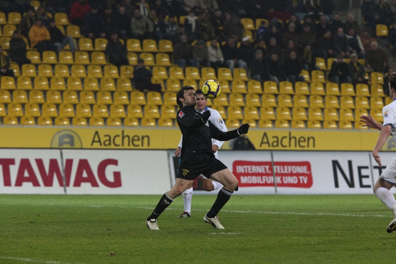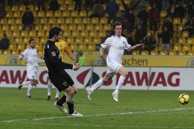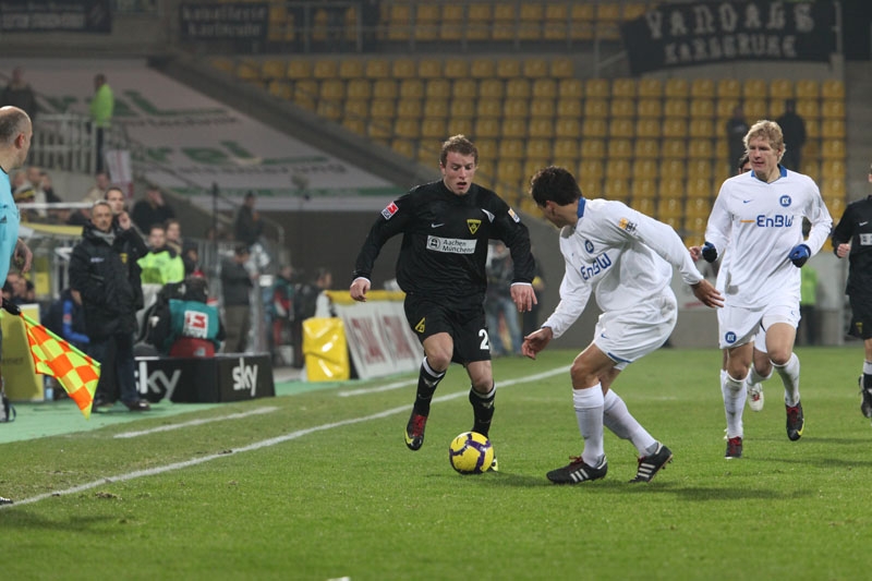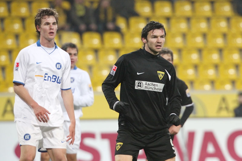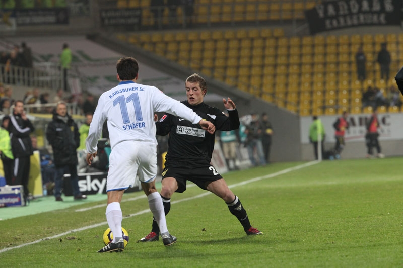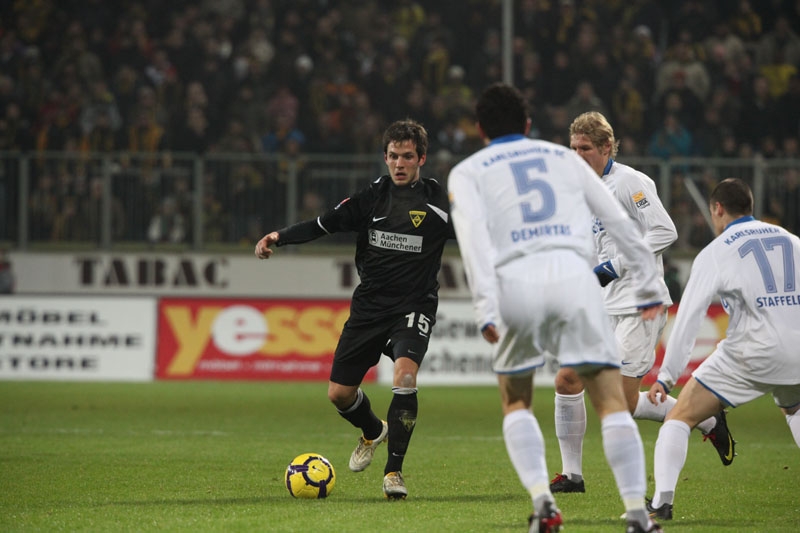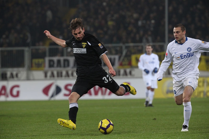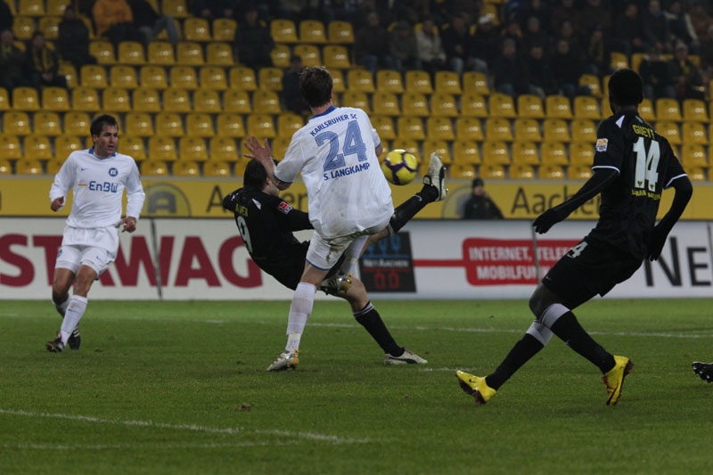 Der Schock saß tief beim KSC, die Alemannia spielte auch in den weiteren Minuten wie im Rausch: Die butterweiche Flanke von Milchraum landete genau auf dem Kopf von Auer, der den Ball knapp über den Gäste-Kasten drückte (9.). Immer einen Schritt schneller und hellwach – die Schwarz-Gelben ließen keinen Zweifel daran aufkommen, wer den Platz als Sieger verlassen würde. Karlsruhe befreite sich erst nach rund 20 Minuten aus der Aachener Umklammerung, Michael Mutzel sendete das erste Lebenszeichen. Fünf Minuten später versuchte sich auch Timo Staffeldt mit einem Fernschuss, den Keeper Stuckmann mit beiden Fäusten über die Latte wuchtete.