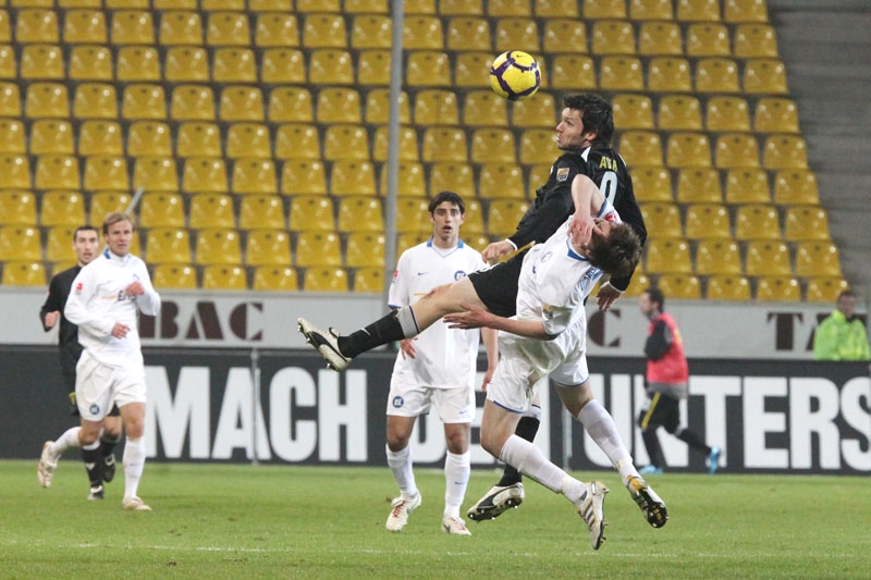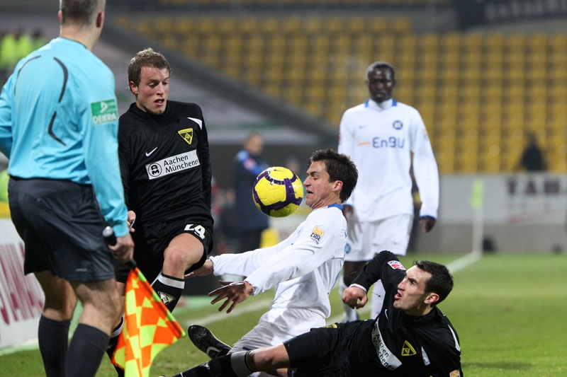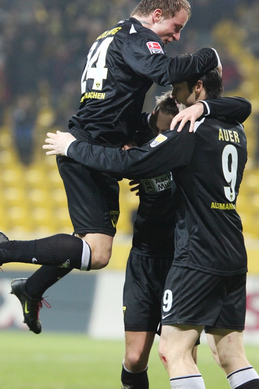 Blitzschnelle Angriffe, Chancen im Minutentakt, drei Treffer: Die Alemannia hat sich beim Rückrundenstart von ihrer besten Seite gezeigt. Mit 3:1 besiegten die Schwarz-Gelben den Erstligaabsteiger Karlsruher SC. Bereits nach 37 Sekunden schoss Daniel Adlung Aachen in Führung, drei Minuten nach Anpfiff der zweiten Hälfte erhöhte Benny Auer. Der KSC verkürzte in der 59. Minute durch Niklas Tarvajärvi, mit einem Eigentor stellte Dino Drpic den alten Abstand aber wieder her.