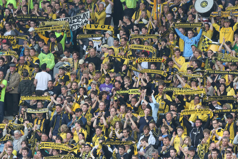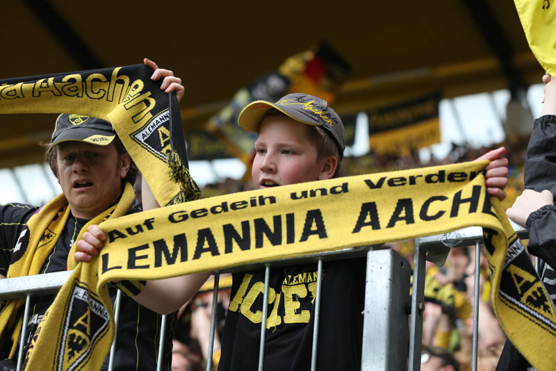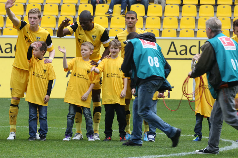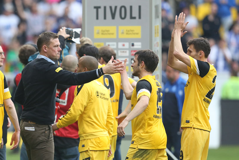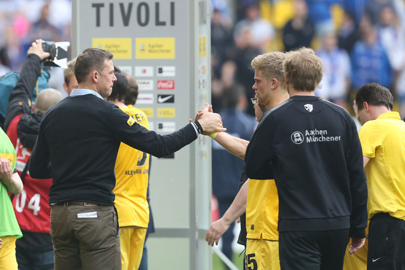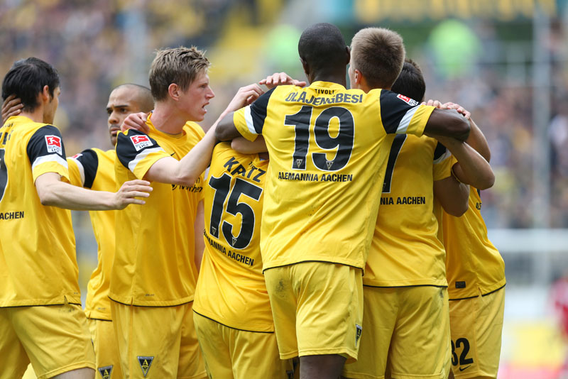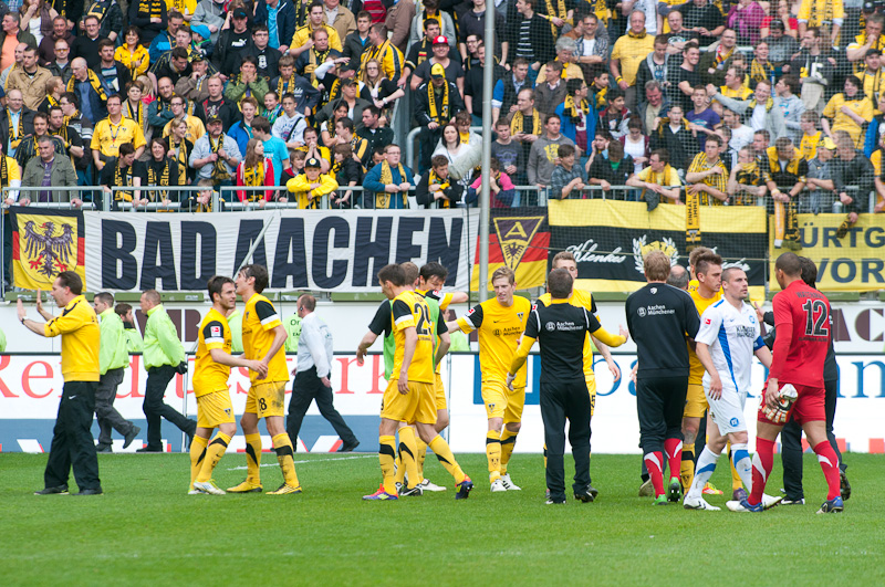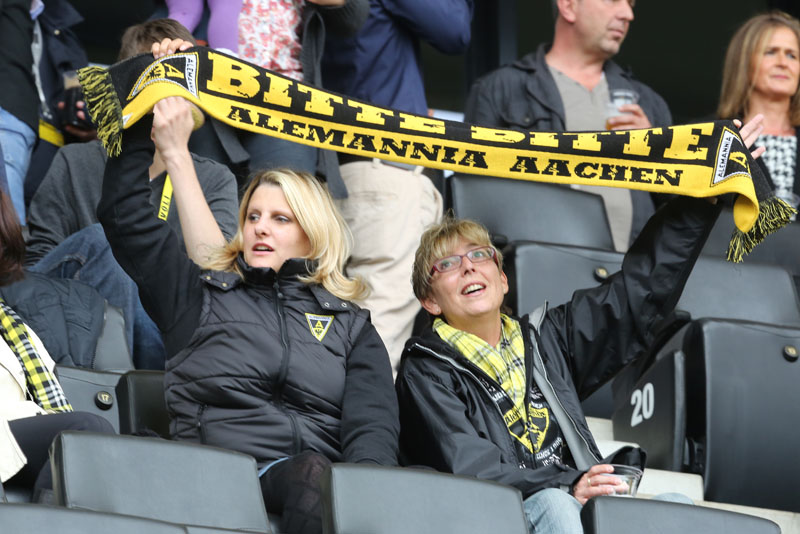 Als die Uhr in der Schlussphase herunter tickte, ging es nur noch darum, diese knappe Führung mit Mann und Maus zu verteidigen. Die Sitzschalen auf der Tribüne waren überflüssig, es hielt niemanden mehr auf den Rängen. Die Bälle wurden nur noch lang und weit herausgeschlagen, das übliche Spiel mit der Zeit. Am Ende grenzenloser Jubel! Eine spielerisch und kämpferisch gute Leistung wurde mit drei immens wichtigen Punkten im Kampf um den Klassenerhalt belohnt. Gewinnt die Alemannia kommenden Sonntag bei 1860 München und Karlsruhe schafft parallel keinen Dreier gegen Eintracht Frankfurt, hat die Aussem-Elf den Relegationsplatz tatsächlich noch erreicht.