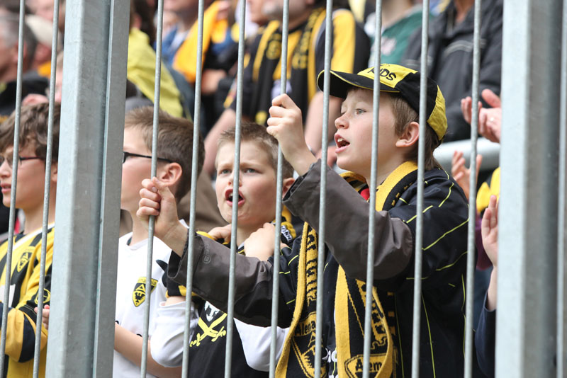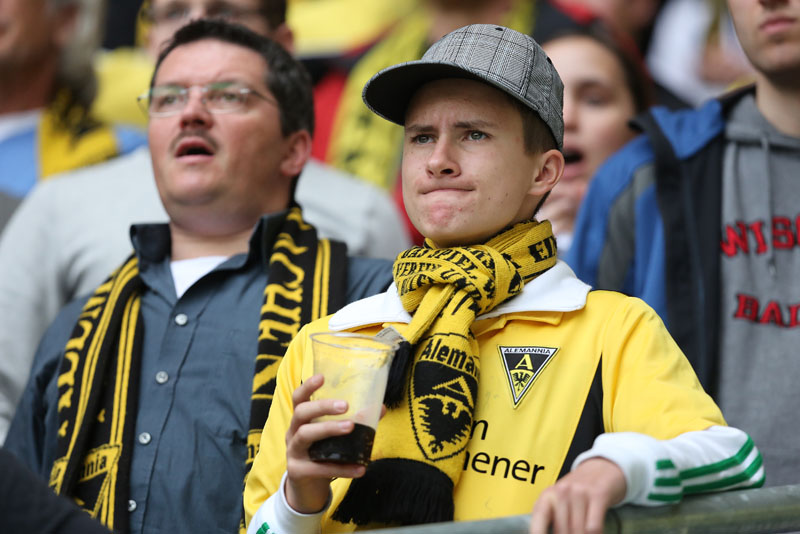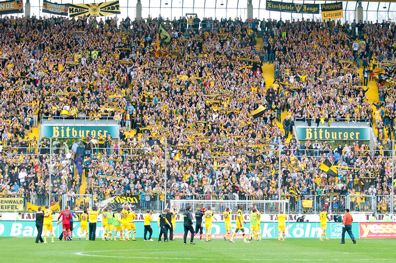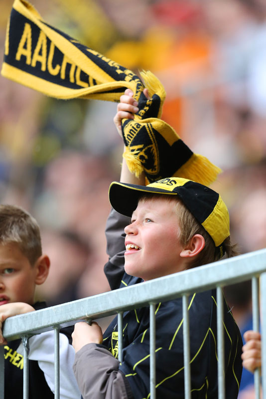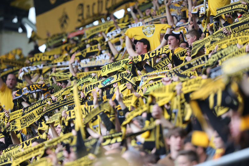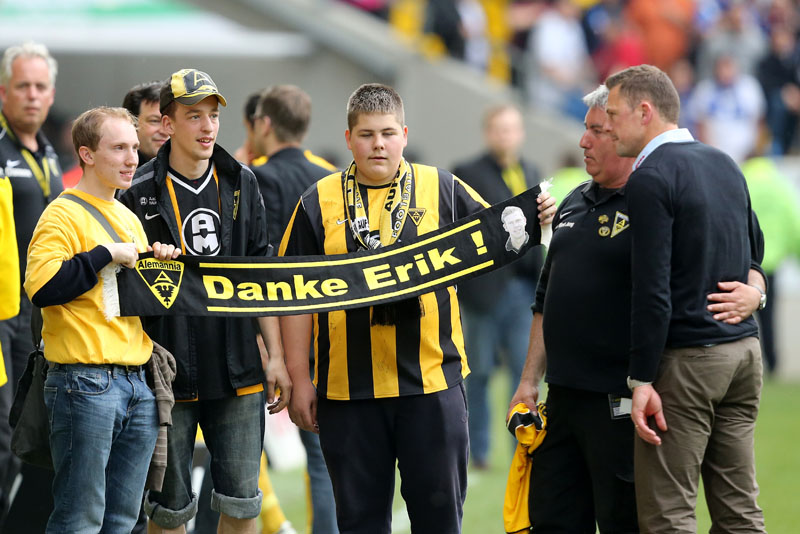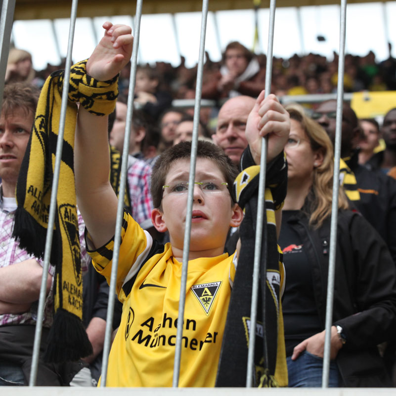 Als die Uhr in der Schlussphase herunter tickte, ging es nur noch darum, diese knappe Führung mit Mann und Maus zu verteidigen. Die Sitzschalen auf der Tribüne waren überflüssig, es hielt niemanden mehr auf den Rängen. Die Bälle wurden nur noch lang und weit herausgeschlagen, das übliche Spiel mit der Zeit. Am Ende grenzenloser Jubel! Eine spielerisch und kämpferisch gute Leistung wurde mit drei immens wichtigen Punkten im Kampf um den Klassenerhalt belohnt. Gewinnt die Alemannia kommenden Sonntag bei 1860 München und Karlsruhe schafft parallel keinen Dreier gegen Eintracht Frankfurt, hat die Aussem-Elf den Relegationsplatz tatsächlich noch erreicht.