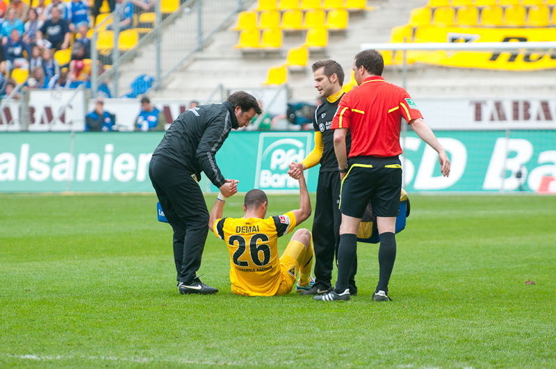 Es gab nur eines, was der Alemannia half: Tore! In der 20. Minute war es soweit, der Tivoli jubelte: Kratz hatte eine gute Ecke in den Strafraum gebracht, Demai erwischte das Leder per Kopf und traf zum 1:0. Die Alemannia hatte in der Video-Analyse gut aufgepasst, schließlich ist der KSC das anfälligste Team bei Standards. Dementsprechend gefährlich wurde es erneut nur neun Minuten später: Wieder war es Kratz mit einer starken Ecke, am langen Pfosten verpassten gleich mehrere Alemannen, die einschussbereit waren. Die Führung für Schwarz-Gelb war mittlerweile verdient.