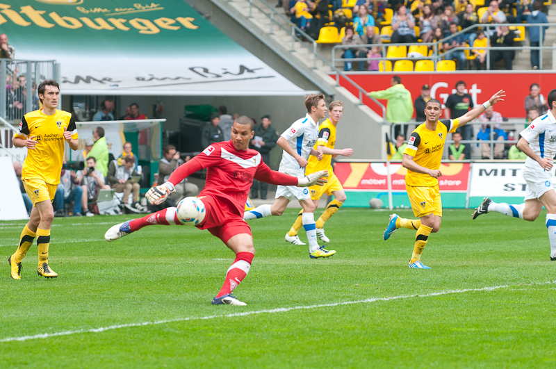 Alemannia Aachen: Waterman – Casper, Olajengbesi, Feisthammel, Achenbach – Demai – Odonkor (76. Junglas), Kratz, Uludag (45. Marquet) – Auer, Stiepermann (86. Radu) / Trainer: Ralf Aussem
