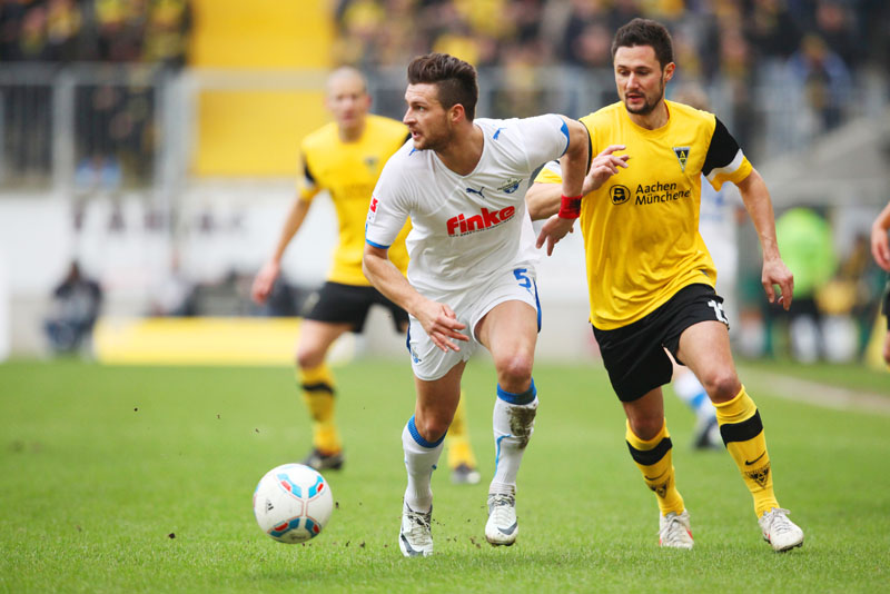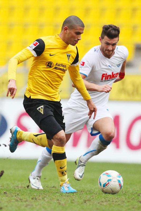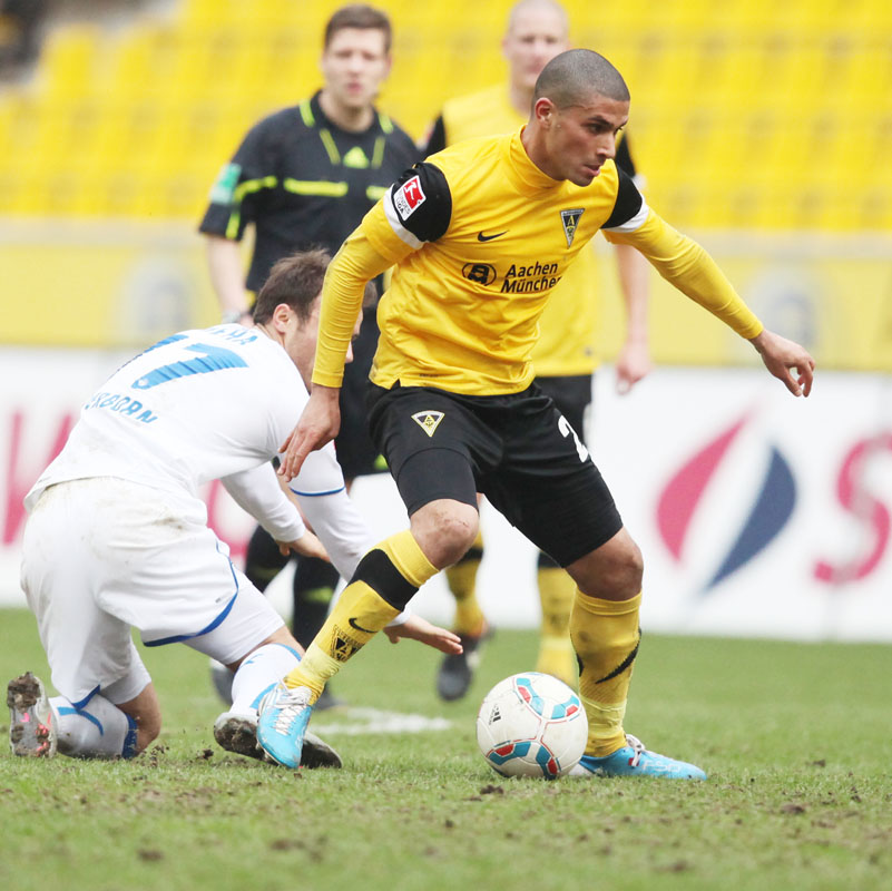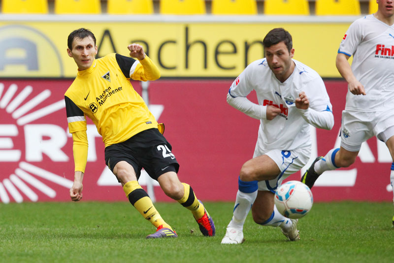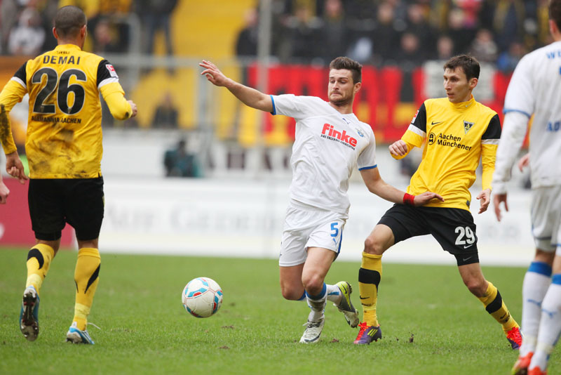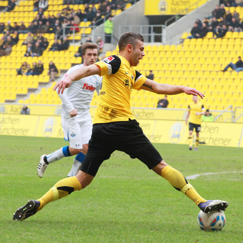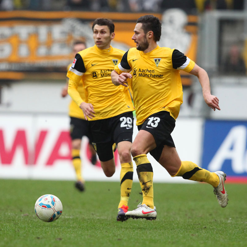 Es war die letzte Aktion des Angreifers, der nach einem Zusammenstoß mit Olajengbesi mit Verdacht auf Jochbeinbruch das Feld räumen musste und durch Matthew Taylor ersetzt wurde. Die Gäste störte das allerdings kaum. Sie machten es der Alemannia mit ihrem kompakten Auftreten schwer und erzeugten immer wieder großen Druck auf Aachens Hintermannschaft. Torchancen waren allerdings plötzlich Mangelware, sowohl auf der einen als auch auf der anderen Seite. Der Alemannia fehlte es insgesamt an Durchschlagskraft in der Offensive, beide Teams trugen ihren Teil dazu bei, dass die Partie überwiegend im Mittelfeld stattfand. Es war fast schon die logische Konsequenz, dass es torlos in die Pause ging.