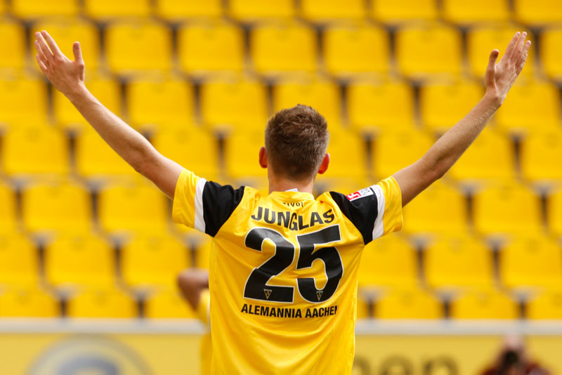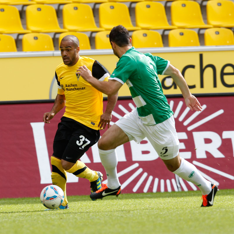 Es machte Spaß, dieser leidenschaftlichen Alemannia zuzusehen, die dafür sorgte, dass man keinen Unterschied zwischen dem Erst- und Letztplatzierten erkennen konnte. Dem starken Radjabali-Fardi gelang es zum wiederholten Male, Schmidtgal auf der rechten Seite stehen zu lassen, sein direkter Abschluss führte nicht zum Erfolg, weil Grün hellwach war (41.). Wenig später war der erste Durchgang beendet, in dem die Alemannia den deutlich besseren Eindruck hinterließ, sich lediglich nicht für ihren enormen Einsatz belohnte.