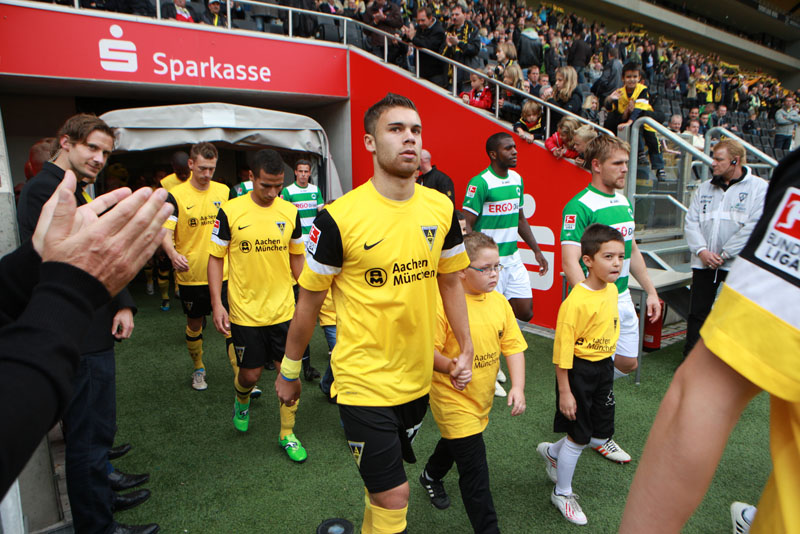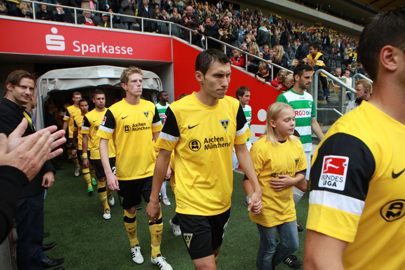 Die Partie hatte schon vor dem Anpfiff eine ganze Reihe an Überschriften im Repertoire: Der Erste gegen den Letzen, oder David gegen Goliath. In den ersten Minuten war davon allerdings nicht viel zu sehen, denn die die Alemannia sorgte für den ersten Höhepunkt des Spiels. David Odonkor riss gleich nach acht Minuten das Publikum mit sich, als der kleine Flügelflitzer auf der rechten Seite zum Sololauf ansetzte und damit zwei Gegenspieler abhängte. Seinen Schuss konnte Fürths Keeeper Max Grün zur Ecke klären.
