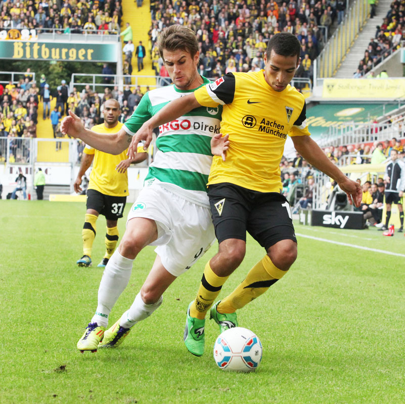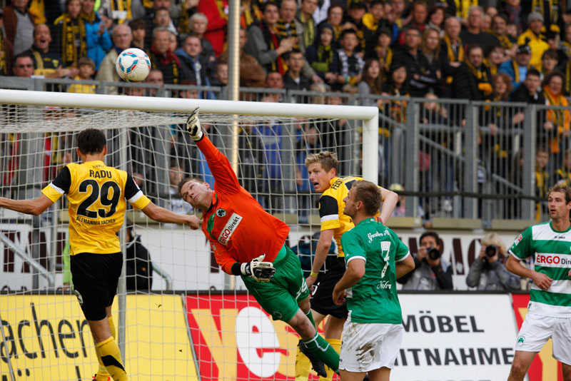 Die Mannschaft lebt, der Siegeswille ist da. Am Sonntagmittag gelang der Alemannia im Heimspiel gegen den Tabellenführer aus Fürth ein hochverdienter Punktgewinn. Im ersten Durchgang war die Alemannia das deutlich aktivere Team. Die Chancen zur Führung waren da, doch sowohl Odonkor als auch Radjabali-Fardi gelang es nicht, Fürths Keeper Grün zu überwinden. Für reichlich Aufsehen sorgte in den ersten 45 Minuten auch Schiedsrichter Stieler, der mehrmals den Überblick verlor und zunächst Junglas und später auch Prib wegen Foulspiels des Feldes verwies. Mit Zehn gegen Zehn ging es nach der Pause weiter, Fürth trat etwas stärker auf, hatte die größte Gelegenheit allerdings erst kurz vor Schluss, als Hohs gegen Sararer einen kühlen Kopf behielt. Zuvor verfehlten Olajengbesi und Hadouir das gegnerische Gehäuse. Und verpassten es somit, einen starken Auftritt mit Toren zu belohnen.
