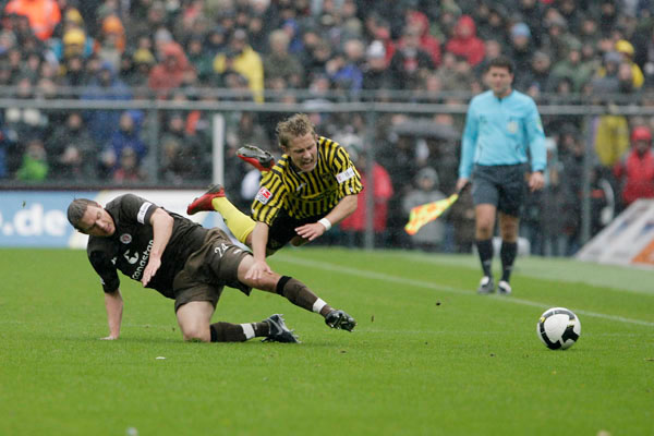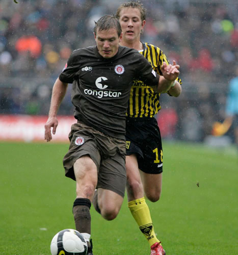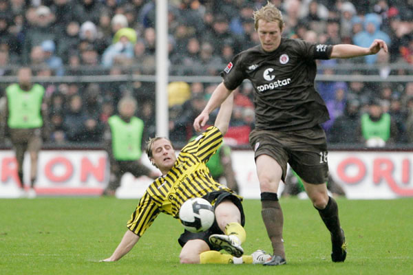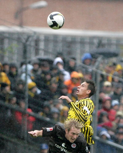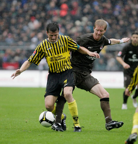 Die Alemannia bleibt auswärts weiter sieglos. In einer abwechslungsreichen und schnellen Partie musste sich das Team von Jürgen Seeberger beim FC St. Pauli vor ausverkauftem Haus und bei strömendem Regen mit 2:3 geschlagen geben. Drei Unachtsamkeiten in den Anfangssekunden beider Hälften und der letzten Sekunde der ersten Halbzeit besiegelten die Niederlage am Millerntor. Ausgerechnet Ex-Alemanne Marius Ebbers trug mit einem Doppelpack maßgeblich zum Sieg der Hamburger bei.