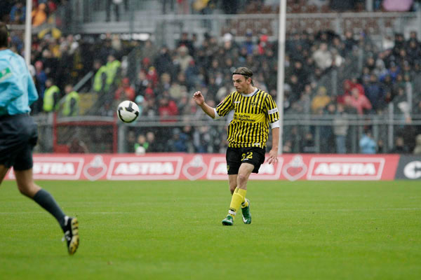 Und das sollte so bleiben: Die ersten Sekunden der zweiten Hälfte glichen Anfang und Ende von Halbzeit 1, in denen die Schwarz-Gelben bereits geschlafen hatten. Rothenbach bediente von der rechten Seite Ebbers, und Stuckmann musste bereits in der 46. Minute zum dritten Mal hinter sich greifen. Beim 1:3 sollte es aber nicht bleiben, denn die Alemannen gaben sich trotz zwei Toren Rückstand nicht auf. In der 60. Minute brachte Keeper Matze Hain Lewis Holtby im Strafraum zu Fall. Schiedsrichter Byrch entschied zu recht auf Elfmeter. Daun legte sich die Kugel auf den Elfmeterpunkt und verwandelte sicher im rechten Eck.