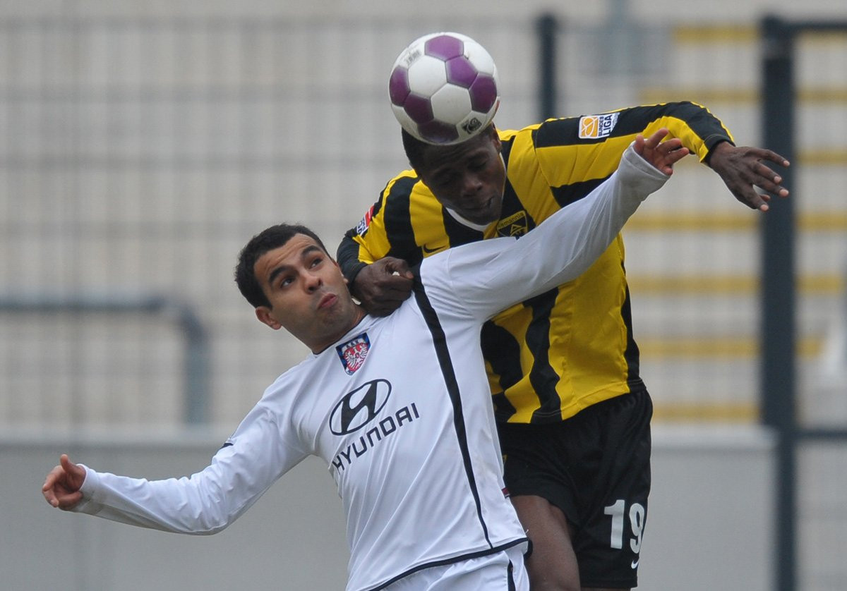 Da die Aachener ihre weiße Weste gegen den FSV behalten wollten, legten sie in Halbzeit 2 den Vorwärtsgang ein. Burkhardt setzte das erste deutliche Ausrufezeichen: Nach einer Kratz-Ecke köpfte der Spielmacher in die Arme von Klandt (51.). Die stärkste Aachener Phase war eingeläutet, Gueye scheiterte vier Minuten später an Frankfurts Keeper. Sein Gegenüber musste nur beim Kopfball des ehemaligen Alemannen Alexander Klitzpera eingreifen (56.) – ansonsten spielte nur noch eine Mannschaft. Und immer wieder war es Babacar Gueye, der sich in den Mittelpunkt dribbelte. Nach einer schönen Kombination jagte der Senegalese den Ball ans Lattenkreuz, den Nachschuss blockten die Frankfurter in höchster Not (61.).