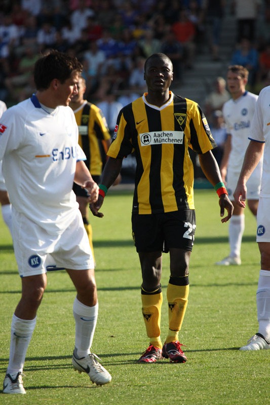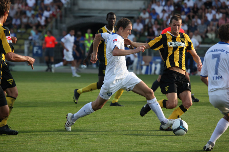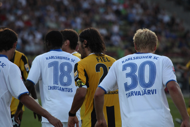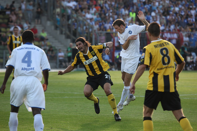 Im Wildparkstadion hatte KSC-Verteidiger Dino Drpic die Schwarz-Gelben durch ein Eigentor in Führung gebracht (53.), acht Minuten vor dem Ende nutzte der eingewechselte Macauley Chrisantus eine Unstimmigkeit in der Aachener Hintermannschaft zum Ausgleich. Vorausgegangen war allerdings ein Foul des Torschützen Chrisantus an Thorsten Burkhardt - Schiedsrichter Günther Perl hätte dem Treffer die Anerkennung verwehren müssen.