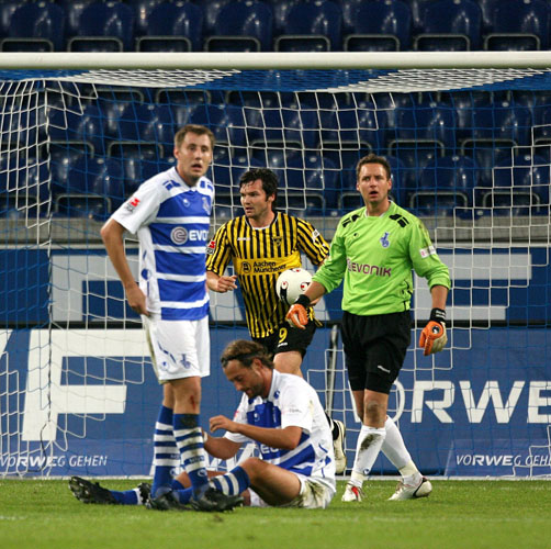 Alemannia Aachen: Stuckmann – Polenz, Szukala, Olajengbesi, Achenbach – Plaßhenrich (70. Daun) – Müller (46. Lasnik), Lehmann (46. Fiel), Holtby – Nemeth, Auer / Trainer: Jürgen Seeberger