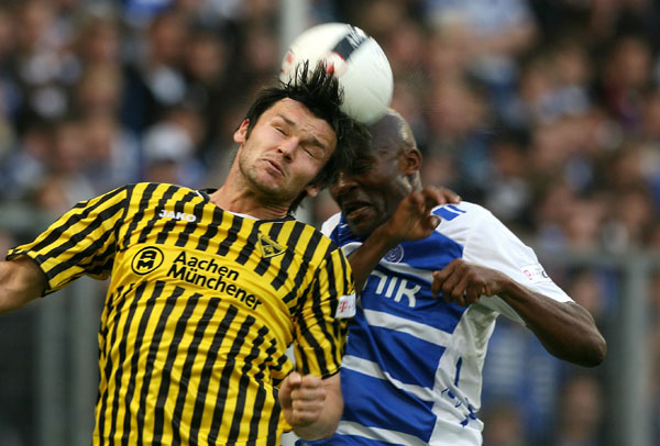 Eine schwache erste Halbzeit brachte die Alemannia am Freitagabend beim MSV Duisburg auf die Verliererstraße. Drei Treffer von Cedric Makiadi bedeuteten einen klaren 0:3-Rückstand zur Pause. Trotz einer äußerst strittigen Gelb-Roten Karte für Lukasz Szukala erzielten Benny Auer und Szilard Nemeth in Unterzahl noch den Anschluss. Am Ende blieb es aber bei der verdienten 2:3-Niederlage in der MSV-Arena.