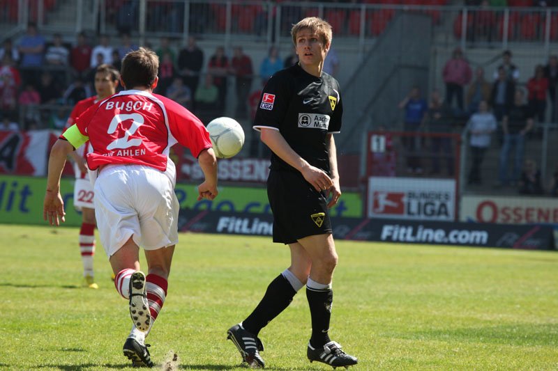 Viele engagiert geführte Zweikämpfe prägten die ersten Minuten im sommerlichen Wersestadion. Die Ordnung im Spiel nach vorne ließen beide Teams jedoch vermissen, so dass die Partie lange vor sich hin plätscherte. Busch (5., 17.) setzte auf Ahlener Seite die ersten Duftmarken, ernsthaft eingreifen musste Stuckmann aber nicht. Das galt auch für Ahlens Keeper Kirschstein, da dessen Vorderleute den Schussversuch von Adlung, nach einem Solo von Özgen, blockten (23.). Die beste Möglichkeit hatte Ahlen nach 28 Minuten: Özkara hatte Busch mit einem schönen Pass in Szene gesetzt. Der RW-Kapitän verlor aber das Eins-gegen-eins-Duell gegen Stuckmann.