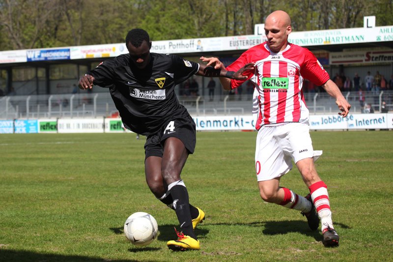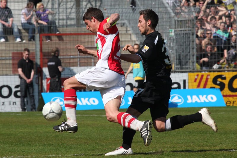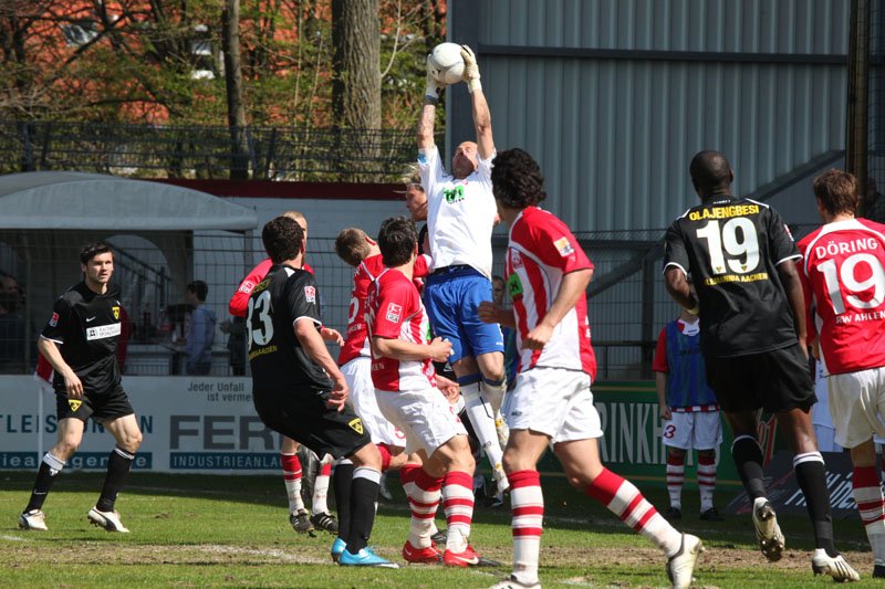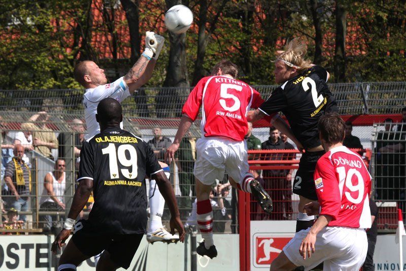 Die Alemannia hat den von Trainer Michael Krüger geforderten Pflichtsieg eingefahren und beim Tabellenletzten Rot-Weiß Ahlen mit 1:0 gewonnen. Den einzigen Treffer in einem über weite Strecken schwachen Spiel erzielte Aimen Demai per Foulelfmeter, nachdem Benny Auer von Ahlens Keeper Sascha Kirschstein rüde von den Beinen geholt worden war (35.). Der glückliche Sieg der Schwarz-Gelben besiegelte den Ahlener Abstieg.