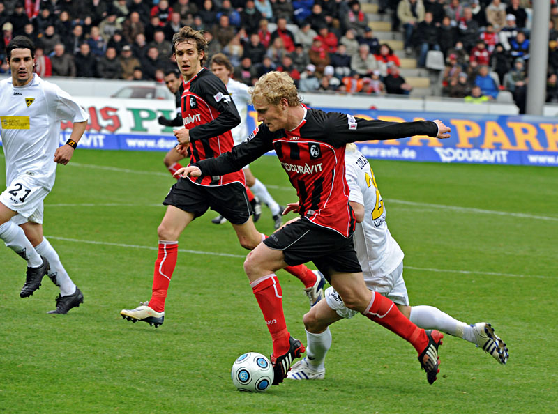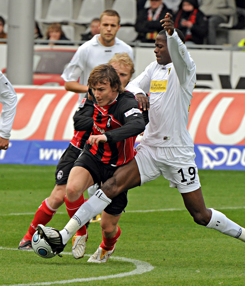 In einem Spiel mit zwei völlig unterschiedlichen Halbzeiten verlor die Alemannia beim SC Freiburg mit 1:2. Ömer Toprak hatte den Gastgeber in der ersten Hälfte verdient in Führung gebracht (11.). Da die Breisgauer den vorzeitigen KO-Schlag verpassten, kamen die Schwarz-Gelben nach dem Seitenwechsel besser ins Spiel: Lukasz Szukala köpfte einen Polenz-Freistoß zum Ausgleich in die Maschen (61.). Zwei Minuten vor dem Ende schlugen die Breisgauer zurück: Tommy Bechmann erzielte per Kopf den Endstand.