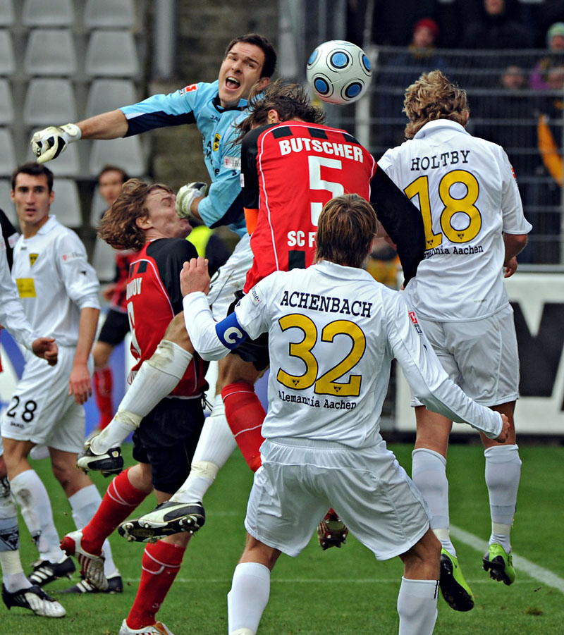 Dabei ist ihm das aktuelle Team der Breisgauer gar nicht so gut bekannt. „Ich kenne in diesem Verein so ziemlich jeden Mitarbeiter. Nur die Mannschaft hat ihr Gesicht in den letzten anderthalb Jahren so verändert, dass ich leider keine Insider-Kenntnisse liefern kann“, sagt Bornemann, der das Kapitel Freiburg längst abgehakt hat. Man muss aber gar kein Experte sein, um die Gastgeber richtig einzuordnen. Die Bilanz weist für die Elf von Robin Dutt nach der Winterpause die Maximalausbeute von 15 Punkten aus - bei 11:2 Toren. Alemannia-Coach Jürgen Seeberger bringt es auf den Punkt: „Die Freiburger geben im Moment in der Liga den Takt an.“ Dabei imponiert dem Trainer der Schwarz-Gelben vor allem, dass die Breisgauer ihre Siege auf unterschiedliche Art und Weise einfahren: Mal souverän und mit spielerischer Leichtigkeit, mal „dreckig“ und mit einem Tor Unterschied.