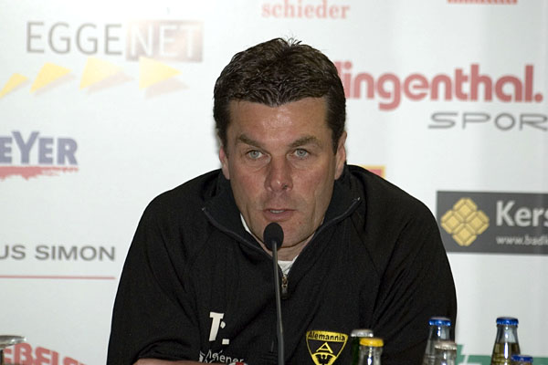 „Es ist natürlich nicht so ganz einfach, den sportlichen Alltag wieder einkehren zu lassen. Genau da liegt das Problem, das wir lösen müssen“, gesteht der Trainer ein. So war auf der Pressekonferenz vor dem Spiel von Freudetrunkenheit nach dem Aufstieg nichts zu spüren. Vorausblickend auf die kommende Saison will Hecking vermeiden, dass es bei einem schwachen Abschneiden in den restlichen Spielen und einem schlechten Start im kommenden Jahr irgendwann heißt: Alemannia seit acht Spielen ohne Sieg. Deshalb ist die Aussage des Coaches klar: „Ich erwarte von der Mannschaft, dass sie schon am Freitag wieder den Anfang findet. Das ist eine klare Forderung von mir, die ich den Jungs deutlich artikuliert habe.“