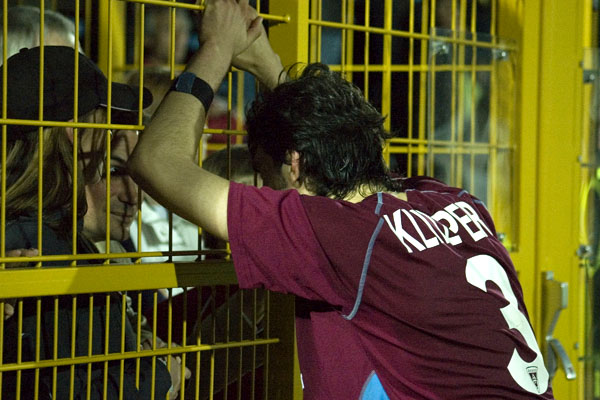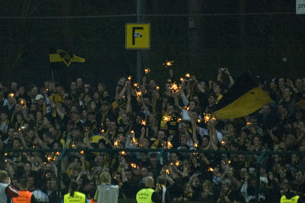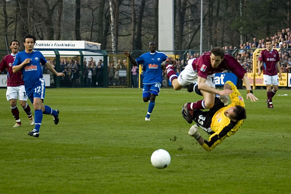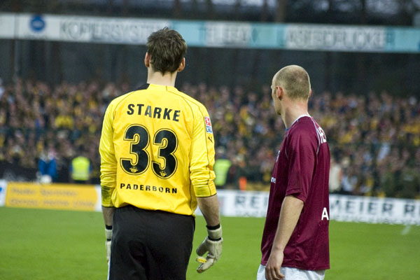 Die Schnelligkeit von Jan Schlaudraff brachte den Aufsteiger zurück ins Spiel. Er kam einen Tick vor Keeper Starke an den Ball, der den Aachener Stürmer auf der Strafraumlinie zu Fall brachte und mit Gelb gut bedient war. Den fälligen Elfmeter verwandelte Goran Sukalo traumhaft sicher (15.). Leider konnten sich die Schwarz-Gelben nicht lange über den Gleichstand freuen. Kristian Nicht machte den ersten gravierenden Fehler, als er einen Fernschuss von Ndjeng durch die Hände gleiten ließ (18.). Die Alemannen blieben zu diesem Zeitpunkt trotz einiger Wackler in der Defensive dennoch im Spiel. Sergio Pinto prüfte Starke per Freistoß, Sukalo setzte einen Kopfball nach Pinto-Ecke knapp über das Tor.