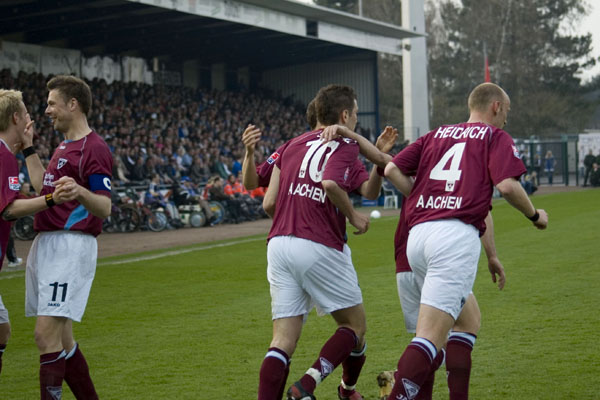 Alemannia Aachen: Casper, Dum, Ebbers (56. Fiel), Heidrich, Klitzpera, Meijer, Nicht, Pinto, Schlaudraff, Sichone (46. Bruns), Sukalo / Trainer: Dieter Hecking