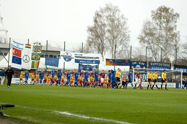 SC Paderborn 07: Bollmann, Brinkmann, Brouwers, de Graef, Gouiffe a Gouffan (46. Erkinger), Krösche (72. Fall), Müller, Ndjeng (56. Dragusha), Schulp, Schüßler, Starke / Trainer: Jos Luhukay