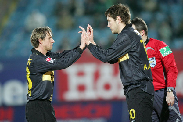 Alemannia Aachen: Ebbers (86. Meijer), Fiel, Klitzpera, Nicht, Noll, Pinto, Plaßhenrich, Reghecampf (89. Sukalo), Rösler, Schlaudraff (77. Koen), Sichone / Trainer: Dieter Hecking