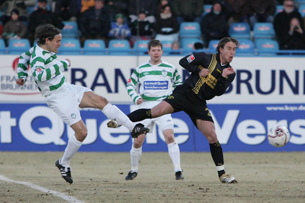 Dann erarbeitete sich sein Team aber auch Chancen. Nach guter Kombination über die linke Seiten mit den Stationen Fiel und Rösler wurde Schlaudraff geblockt und durch eine misslungene Kopfballabwehr der Fürther fiel der Ball Rösler vor die Füße, der aber verzog. Kurz vor der Pause klärte Sichone auf der anderen Seite vor Eigler.