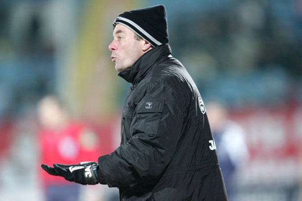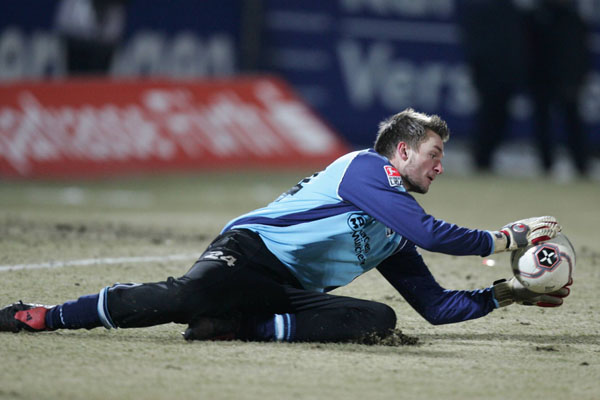 Auf dem gefrorenen Rasen, der besonders in den zweiten 45 Minuten schwer zu bespielen war, begannen die Gastgeber stürmisch. Hilbert brachte Fuchs in Szene, der verzog und einen Mitspieler anschoss (5.). Sascha Rösler setzte an alter Wirkungsstätte einen 16-Meter-Schuss am Tor vorbei. Nach 10 Minuten tauchte Eigler allein vor Nicht auf, der aber die Ruhe behielt. Einen Schuss von Page blockte Alex Klitzpera zur Ecke (16.). „In den ersten 20 Minuten hat man gemerkt, dass uns nach den vier Tagen im Hotel die Spannung noch ein wenig fehlte“, erklärte Trainer Dieter Hecking.