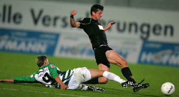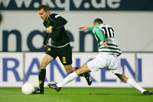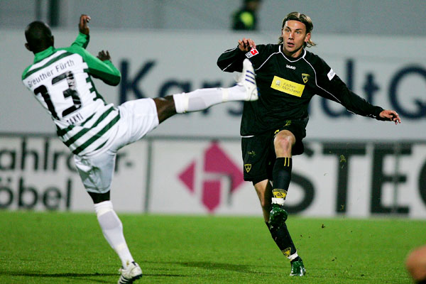 Schon die Anfangsphase des Spiels war geprägt von zahlreichen Torraumszenen. Die erste Chance zum Führungstreffer vergab Benny Auer in der 4. Minute: Der Angreifer scheiterte völlig freistehend am neuen Fürther Keeper Stephan Loboue. Im direkten Gegenzug hätten sich die Schwarz-Gelben nicht beschweren können, wenn das 1:0 auf der anderen Seite gefallen wäre. Seyi Olajenbesi hatte aber etwas dagegen und klärte in höchster Not, nachdem der Toptorschütze der zweiten Liga, Sami Allagui, bereits an Alemannen-Keeper Thorsten vorbei war. Wer jetzt dachte die Anfangsoffensive sei vorrüber, sah sich getäuscht: Mit einem schönen Fernschuss verfehlte Szilárd Nemeth den Kasten der Franken nur knapp (9.).