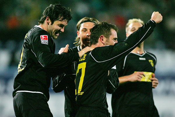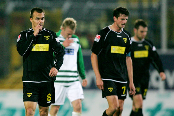 Alemannia Aachen: Stuckmann – Lagerblom, Stehle, Olajengbesi, Achenbach – Plaßhenrich (54. Brinkmann), Lehmann – Daun, Nemeth (87. Müller), Holtby (60. Milchraum) – Auer / Trainer: Jürgen Seeberger