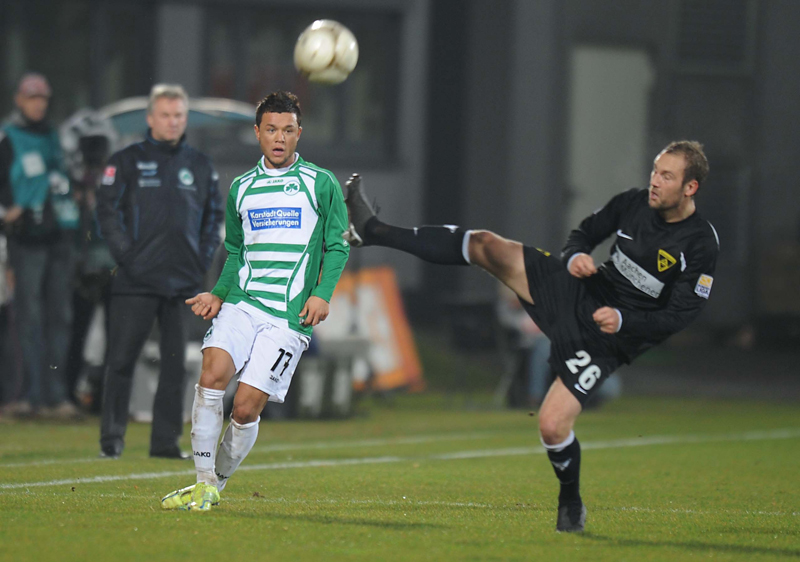 Mit einem schnell vorgetragenen Angriff versuchte Fürth zu antworten: Sami Allagui bekam bei seinem Kopfballversuch aber nicht genug Kraft hinter den Ball (15.). Im direkten Gegenzug verhinderte Loboué mit einem starken Reflex den zweiten Gegentreffer: Den 20-Meter-Schuss von Benny Auer parierte der Keeper der Spielvereinigung in höchster Not. Die Alemannen bekamen nun immer mehr Sicherheit in ihr Spiel: Burkhardts Schuss mit dem schwächeren linken Fuß landete in den Armen von Loboué (25.).