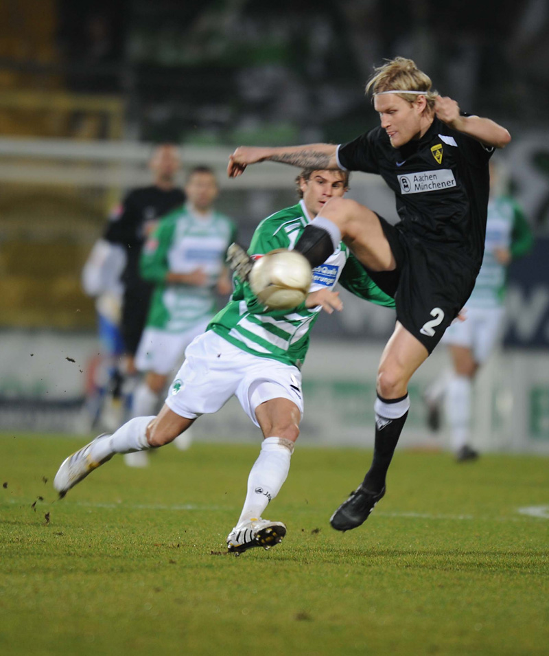 Konzentration, Leidenschaft, Spielfreude: Im Frankenland hat sich die Alemannia mit einer überzeugenden Vorstellung zurückgemeldet. Mit 2:0 besiegten die Schwarz-Gelben die SpVgg Greuther Fürth. Patrick Milchraum erzielte bereits nach zehn Minuten den Führungstreffer, Benny Auer besiegelte mit seinem sechsten Saisontor (72.) den historischen Erfolg: Zum einen war es der erste Aachener Sieg im Playmobilstadion, zum anderen sprangen die Alemannen auf Platz 1 der ewigen Zweitligatabelle.