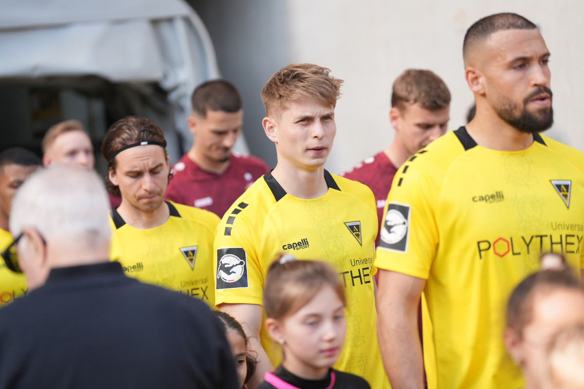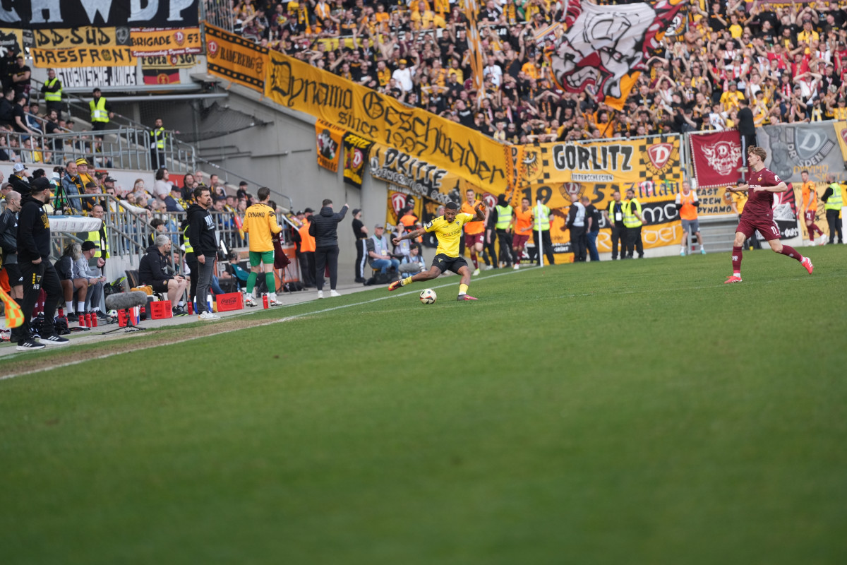 Auch Anas Bakhat hätte in dieser Phase die Alemannia-Führung besorgen können, scheiterte aber erst aus spitzem Winkel an SGD-Keeper Schreiber (42.) und wurde dann von einem Dynamo-Verteidiger entscheidend geblockt (45.). Nur zwei Minuten nach letztgenannter Gelegenheit bestraften die in Weinrot gekleideten Dresdener den schwarz-gelben Chancenwucher und schlugen eiskalt zu: Eine Rechtsflanke von Sterner rutschte durch zu Kapitän Hauptmann, der die Kugel aus zentraler Position an Olschowsky zum 0:1 vorbeispitzelte (45.+2). Der unglückliche und unverdiente Nackenschlag für die Tivoli-Kicker kurz vor dem Halbzeitpfiff.