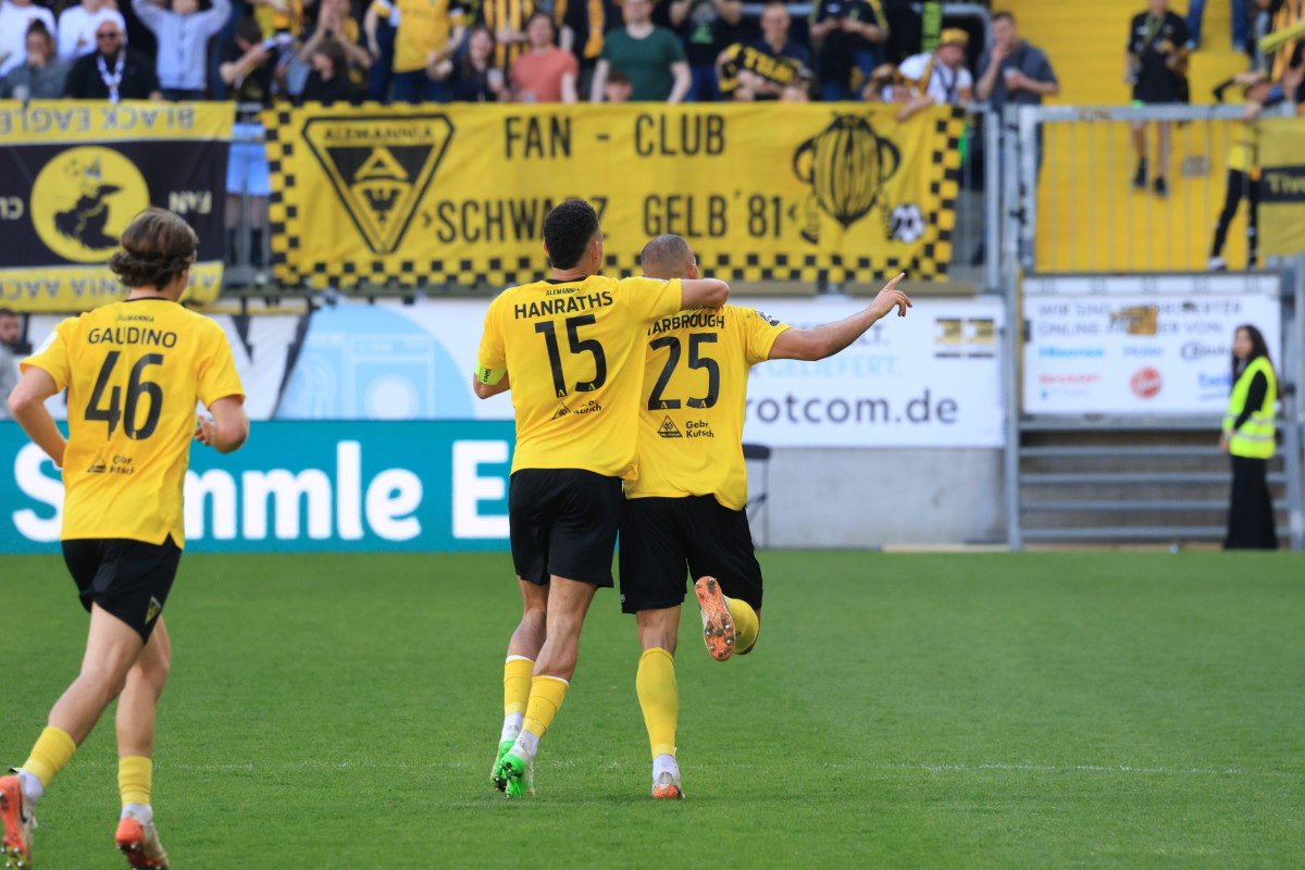 Stattdessen sorgte wieder die Alemannia für Gefahr, der eingewechselte Heinz schoss aus rund 20 Metern knapp vorbei (81.). Die Schlussphase war da längst angebrochen, doch die mit dem Rücken zur Wand stehenden Gäste blieben trotz zahlreicher Wechsel ungefährlich. Die Backhaus-Elf hingegen brachte das umjubelte 2:1 über die Zeit und hat mit nun 44 Punkten beste Karten für den Ligaverbleib, wobei das nächste Spiel gegen einen direkten Konkurrenten – 1860 München – am nächsten Samstag um 14 Uhr im Stadion an der Grünwalder Straße steigt. Zuvor will Schwarz-Gelb aber das Ticket für das Bitburger-Pokal-Finale lösen, am Mittwoch um 19 Uhr geht es ins Halbfinale bei Fortuna Köln.