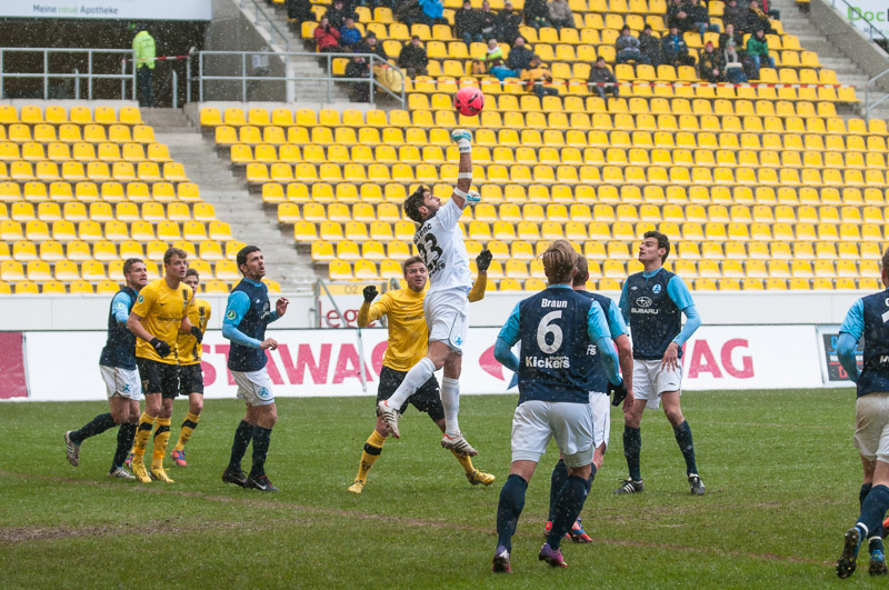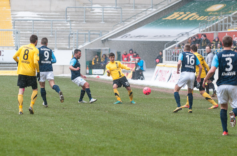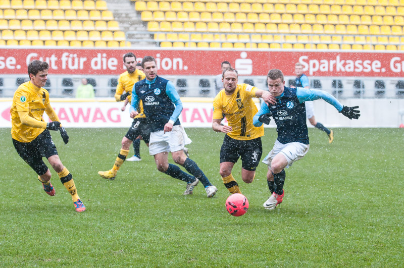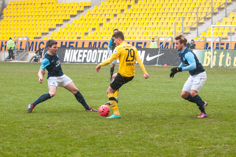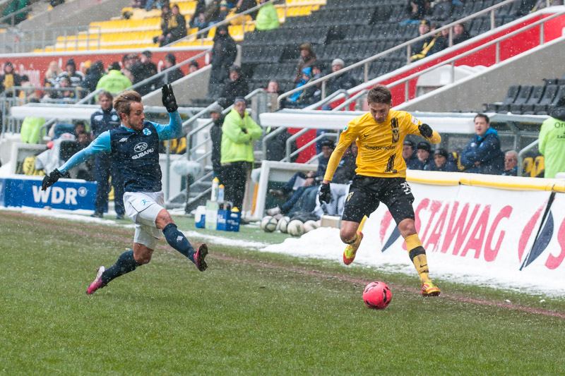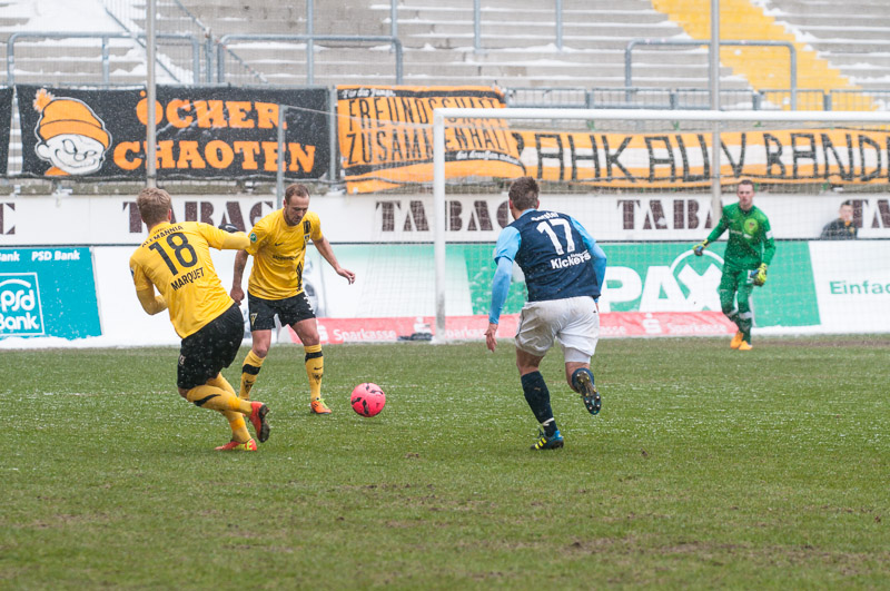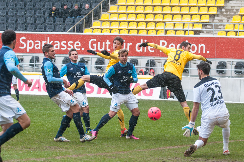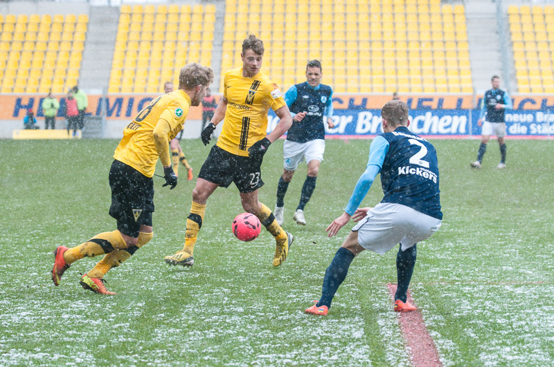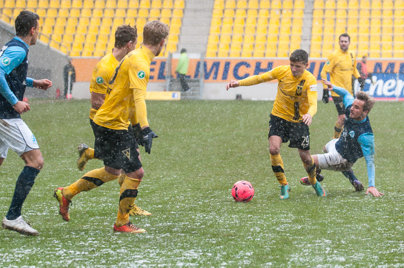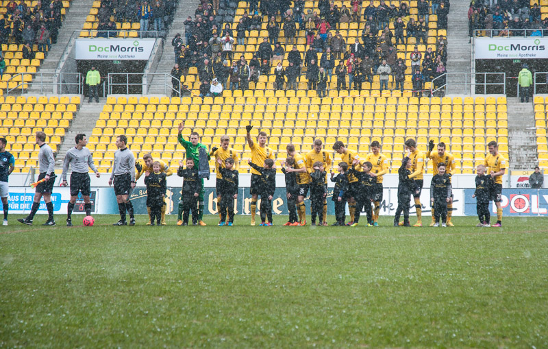 Nach überstandener Grippewelle hatte sich auch Timmy Thiele nach Rückproblemen rechtzeitig wieder fit gemeldet. René van Eck hatte dadurch mehr Alternativen und baute die Mannschaft im Vergleich zu den Vorwochen in der Offensiv etwas um. Vor Mark Flekken bildeten Robert Wilschrey, Mario Erb, Sascha Herröder und Sasa Strujic unverändert die Abwehrkette. Im defensiven Mittelfeld agierten Kristoffer Andersen und Armand Drevina hinter dem offensiven Dario Schumacher. Komplettiert wurde die Elf durch das Angriffstrio Marcel Heller, Timmy Thiele und Sascha Marquet.