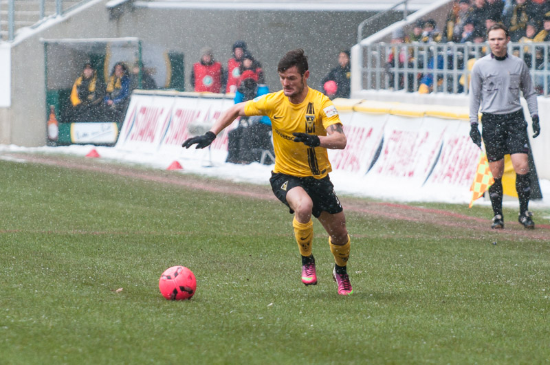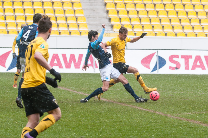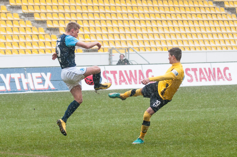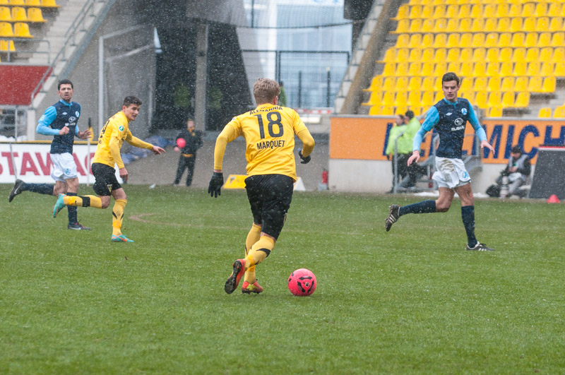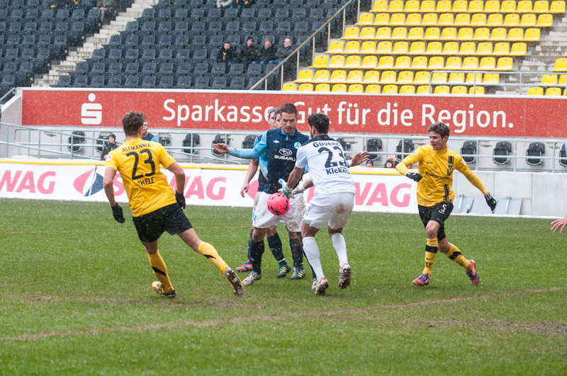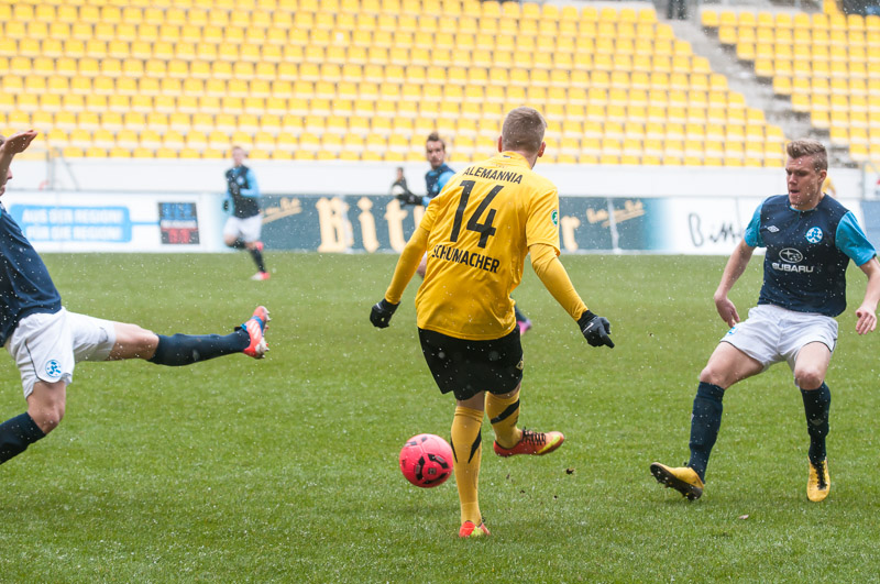 Die Alemannen waren von Beginn an das aktivere Team und hatten nach 16 Minuten ihre erste Gelegenheit. Thiele kam nach einem Steilpass von Drevina aber einen Tick gegen Gästekeeper Güvenc zu spät. Auf der Gegenseite rettete Herröder sechs Minuten später in höchster Not gegen Grüttner. Nachdem Heller sich nach einem langen Ball von Strujic das Leder in letzter Sekunde noch vom Fuß spitzeln lassen musste (32.), kamen die Tivoli-Kicker wenig später zu ihrer größten Chance im ersten Spielabschnitt. Thiele war auf den rechten Flügel ausgewichen und seine Hereingabe traf Marquet aus fünf Metern freistehend nicht optimal. Das Leder ging daher knapp links vorbei (36). Eine Pausenführung wäre sicherlich nicht unverdient gewesen.