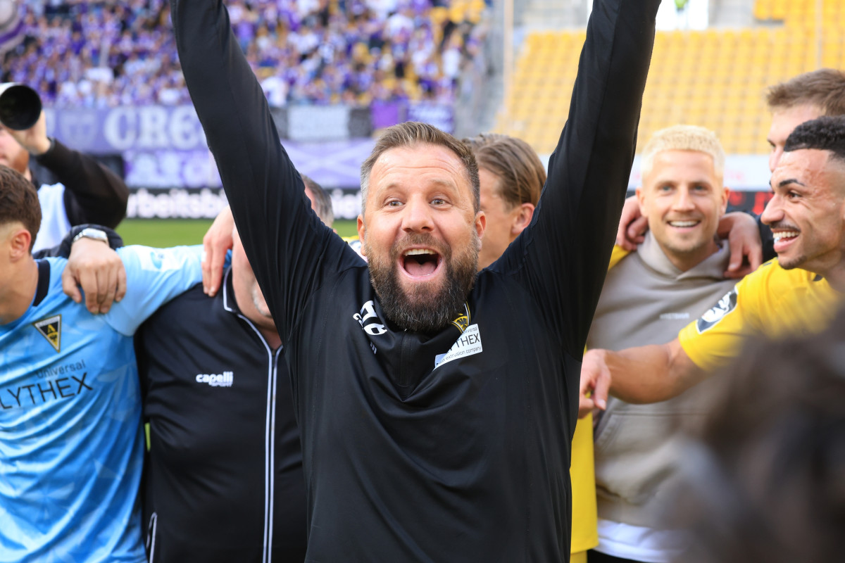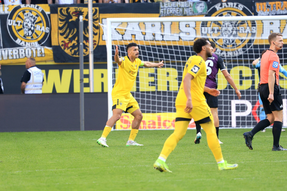 Mika Hanraths: Die drei Punkte waren heute immens wichtig. Wir haben in einem Spiel auf Augenhöhe gegen einen sehr guten Gegner einen Riesen-Schritt gemacht. Großes Lob an die Jungs, das war brutal. Osnabrück hatte im ganzen Spiel eine gute Chance, wobei das durch einen abgefälschten Ball auch mehr Zufall war. Ansonsten waren wir sehr kompakt, sehr diszipliniert und sind viel gelaufen. Die Jungs da vorne haben Unheimliches abgerissen, das war immens wichtig. Hier haben heute die beiden ekligsten Mannschaften gegeneinander gespielt. Die Frage war dabei: Wer investiert mehr? Wir haben es dann einfach 90 Minuten diszipliniert gemacht. In den Sekunden meines Siegtors ist mir eigentlich gar nichts durch den Kopf gegangen. Ich habe ehrlicherweise nicht damit gerechnet, dass ich ein Tor mache, da ich vorne nicht unbedingt der Gefährlichste bin – vor allem mit den Kopf habe ich für Schwarz-Gelb bisher noch gar nicht getroffen. Es war ein unfassbar schönes Gefühl, vor der Kurve zu jubeln. Die Feier mit den Fans nach dem Spiel haben wir dann sehr genossen, mir ist gefühlt schon der fünfte Stein vom Herzen gefallen in dieser Saison. Aber: Wir sind noch nicht durch, der Fokus muss am Anschlag bleiben. Wir spielen zudem noch ein Pokalfinale. Belastungstechnisch müssen wir schauen, dass wir alle fit bleiben. Aber sonst gilt: Bis zum 24.5. Vollgas!