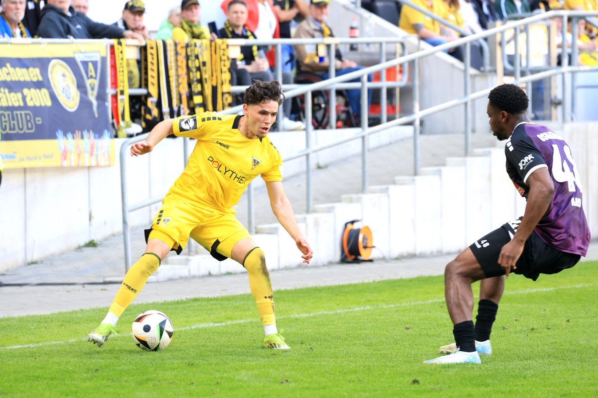 Für die Zielgeraden brachte Backhaus Meyer und den genesenen Castelle für Bakhat und Heister. Meyer bot sich Sekunden später eine Schusschance, wobei er kurz vor dem Strafraum des VfL wegrutschte (79.). In der Folge bekamen die Gäste Oberwasser und begannen die Schlussoffensive. Ein Versuch von Wiemann (87.) flog deutlich drüber, Kayo zielte aus guter Position in die Arme von Olschowsky (88.). Angepeitscht von der Werner-Fuchs-Tribüne wurde die Tivoli-Elf in der Schlussphase ordentlich in die eigene Hälfte gedrängt, hielt aber kämpferisch dagegen. Und der Aufwand wurde belohnt: Auch die vierminütige Nachspielzeit überstanden die Schwarz-Gelben schadlos und retteten das 1:0 über die Zeit. Für die Osnabrücker war es die erste Auswärtsniederlage seit Anfang Dezember. Weiter geht es für die Backhaus-Elf am nächsten Samstag, 3. Mai, auswärts beim VfB Stuttgart II, wo der Ligaerhalt endgültig perfekt gemacht werden kann.