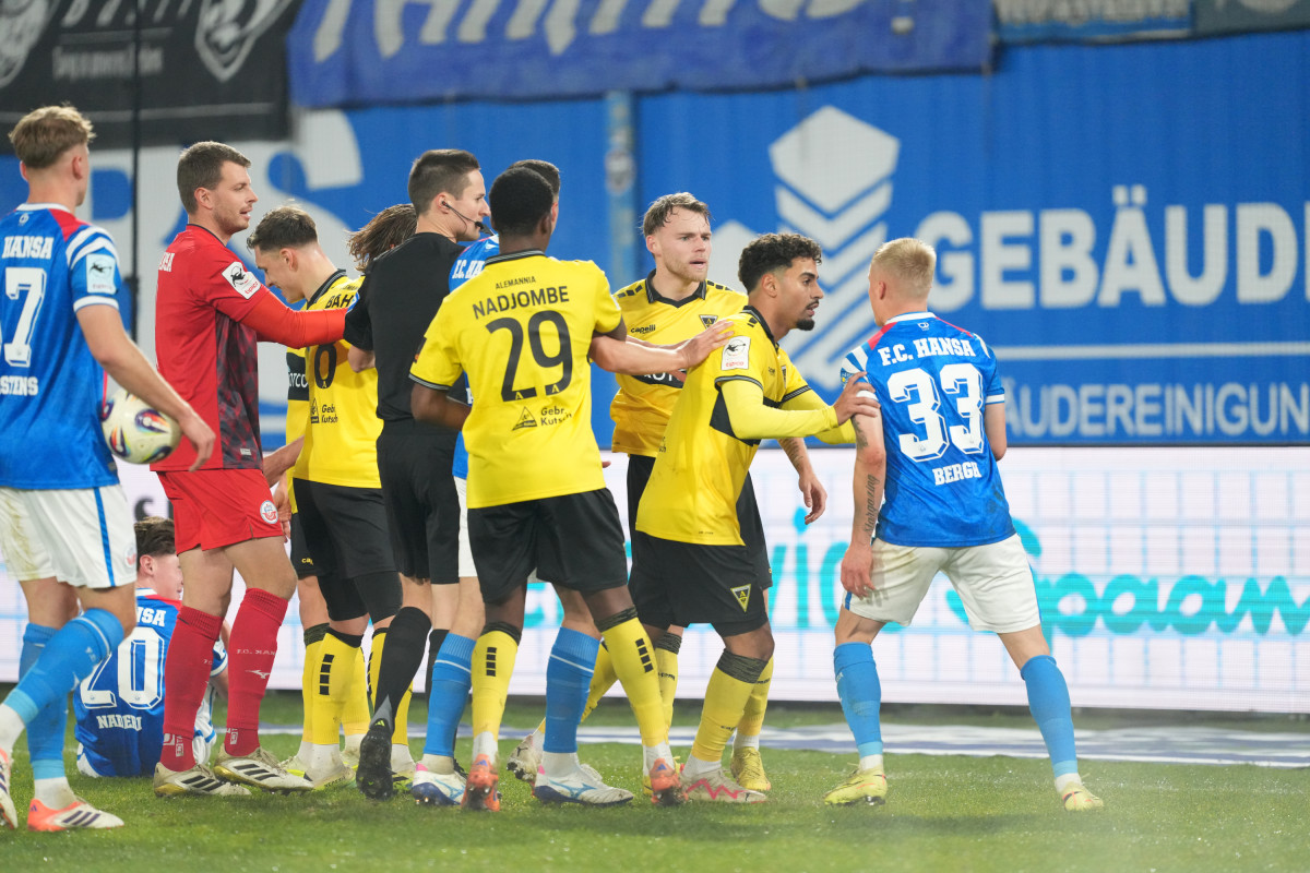Alemannia Aachen holt nach einer unfassbaren Energieleistung ein 2:2 gegen den F.C. Hansa Rostock. Danilo Wiebe sah direkt zu Beginn der Partie eine zweifelhafte Rote Karte (10.). In Unterzahl sorgte Mehdi Loune für die Aachener Führung (34.). Doch in der Nachspielzeit der 1. Halbzeit glich Kenan Fatkic per Elfmeter nach einer Fehlentscheidung des Schiedsrichters aus (45.+4). Emil Holten brachte die Hausherren kurz vor Ende des Spiels in Führung (90.+5). Das letzte Wort hatte aber die Alemannia: Faton Ademi glich in der letzten Sekunde zum vielumjubelten 2:2 aus (90.+10).