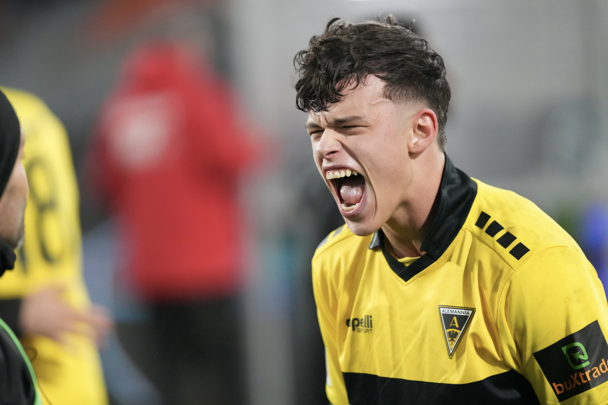 Die Alemannia war aber keinesfalls vom späten Nackenschlag gebrochen und gab das Spiel nicht verloren. Kurz vor Schluss brachte Ademi die gut 1.000 mitgreisten Fans dann zum Explodieren. Eine Flanke von Bentley Baxter Bahn fand den Kopf von Mentalitätsmonster Scepanik, der in die Mitte zu Ademi verlängerte. Der Junge Aachener setzte sich von seinem Gegenspieler ab und erzielte auf artistische Art und Weise den Ausgleich (90.+10). Direkt danach war das Spiel zu Ende. Ein Spiel, in dem die Alemannia sich äußerst kämpferisch zeigte und völlig verdient aufgrund ihres großen Einsatzes einen Punkt mit zurück in die Kaiserstadt mitnimmt.