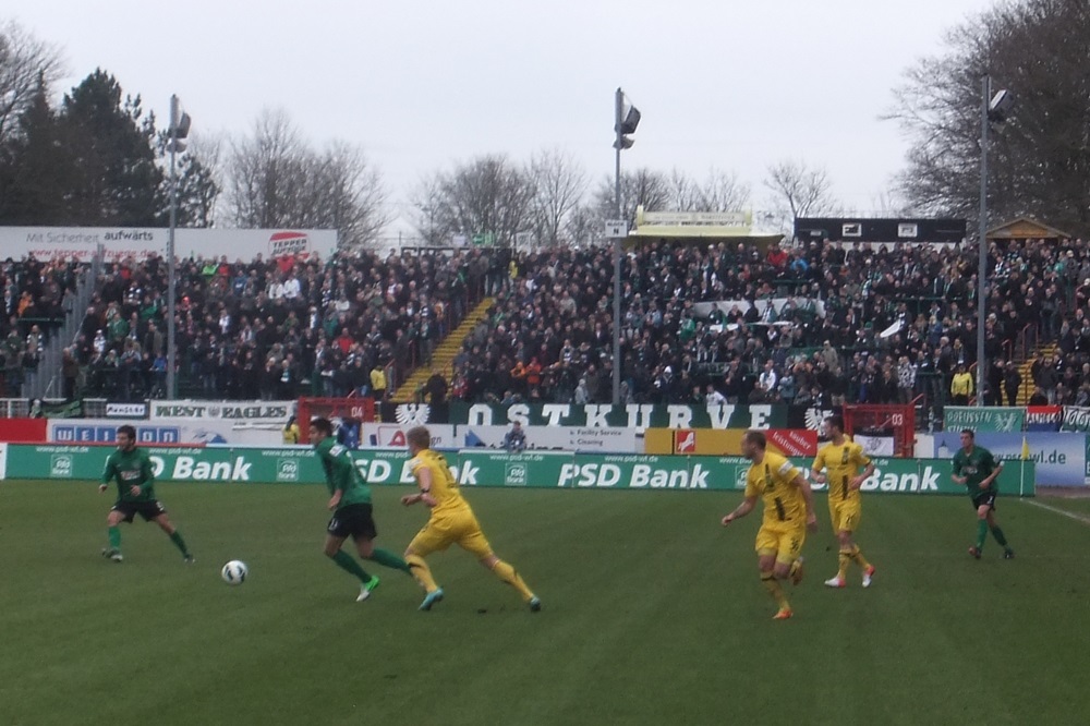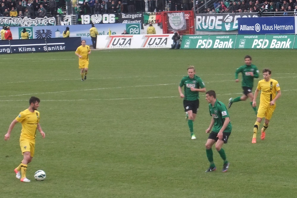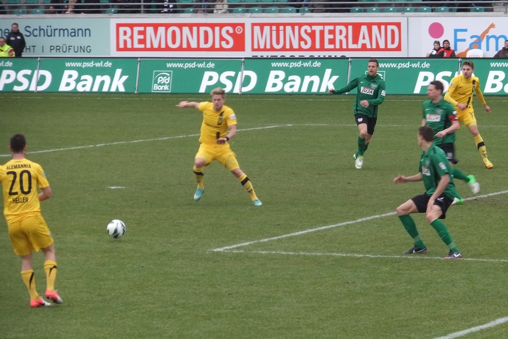 Die ebenso unnötige wie bittere Niederlage gegen den SV Babelsberg ist abgehakt. René van Eck und sein Team schauen wieder nach vorne, denn am kommenden Samstag, 16.03.2013 (Anstoß 14.00 Uhr, Preußen-Stadion), erwartet die junge Aachener Elf eine äußerst knifflige Aufgabe. Der heimstarke Gastgeber Preußen Münster hat als einzige Mannschaft der 3. Liga in dieser Saison noch kein Heimspiel verloren.