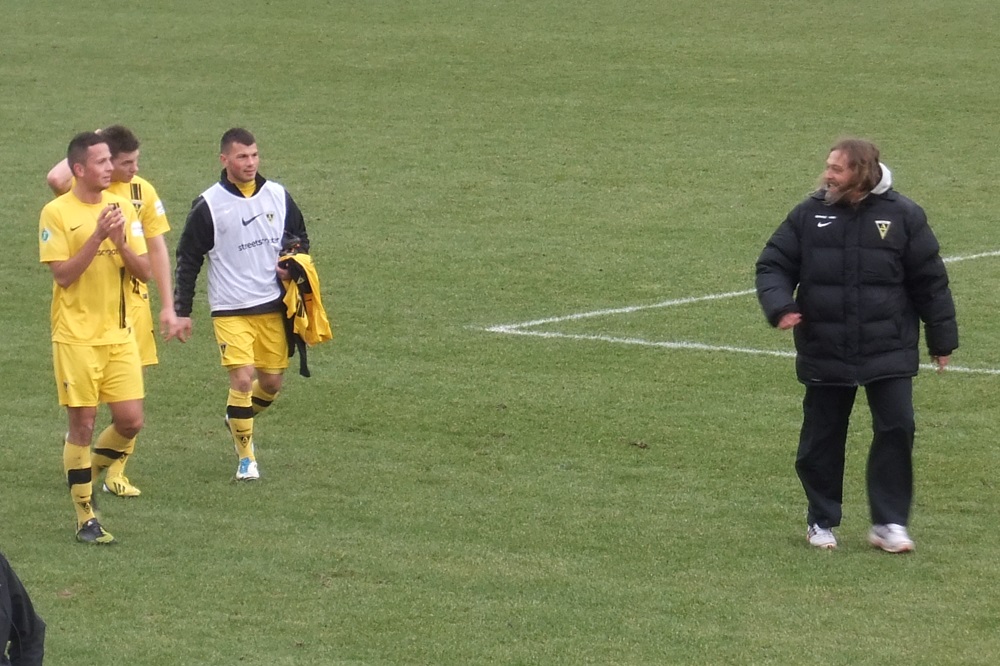 René van Eck: Wir wissen, was wir können, und wir können auch jeden schlagen, aber zu zehnt wird es natürlich schwierig und das wichtigste ist natürlich, dass wir die Chancen, die wir haben auch nutzen. Und es ist immer so, dass wir das Spiel bestimmen, das war schon gegen Haching so, gegen Babelsberg dann ein bisschen weniger, aber dann musst du einfach die Tore machen, sonst bekommst du selber welche und dann gehst du immer mit leeren Händen nach Hause. Ich habe auch der Mannschaft gesagt, es geht jetzt nicht mehr darum, schön zu spielen oder dass wir das Spiel bestimmen, wichtig ist einfach, dass wir jetzt Punkte holen, egal wie.