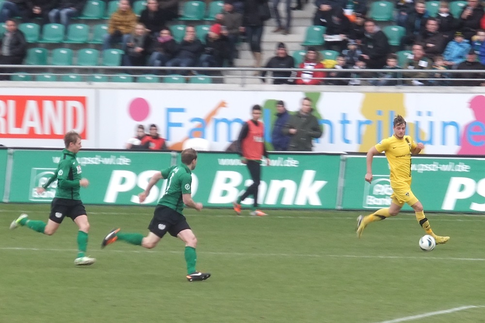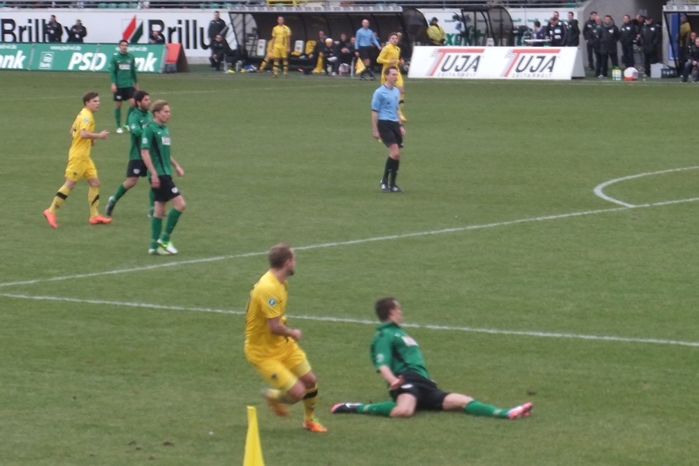 Alemannia Aachen: Flekken – Wilschrey, Schaffrath, Brauer, Strujic – Murakami, Marquet (82. Leipertz) – Heller, Schumacher (55. Simon), Kefkir – Thiele (71. Pozder) / Trainer: René van Eck