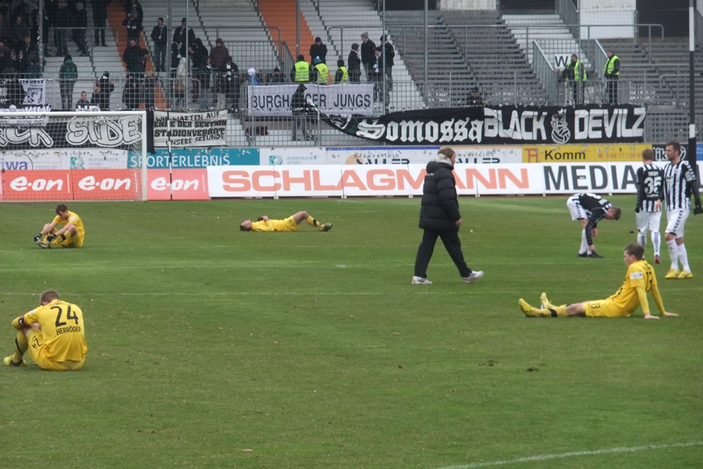 Alemannia Aachen: Flekken – Ajani (46. Leipertz), Schaffrath, Herröder, Strujic – Drevina (46. Pozder) – Heller, Brauer, Andersen, Marquet (74. Simon) – Thiele / Trainer: René van Eck