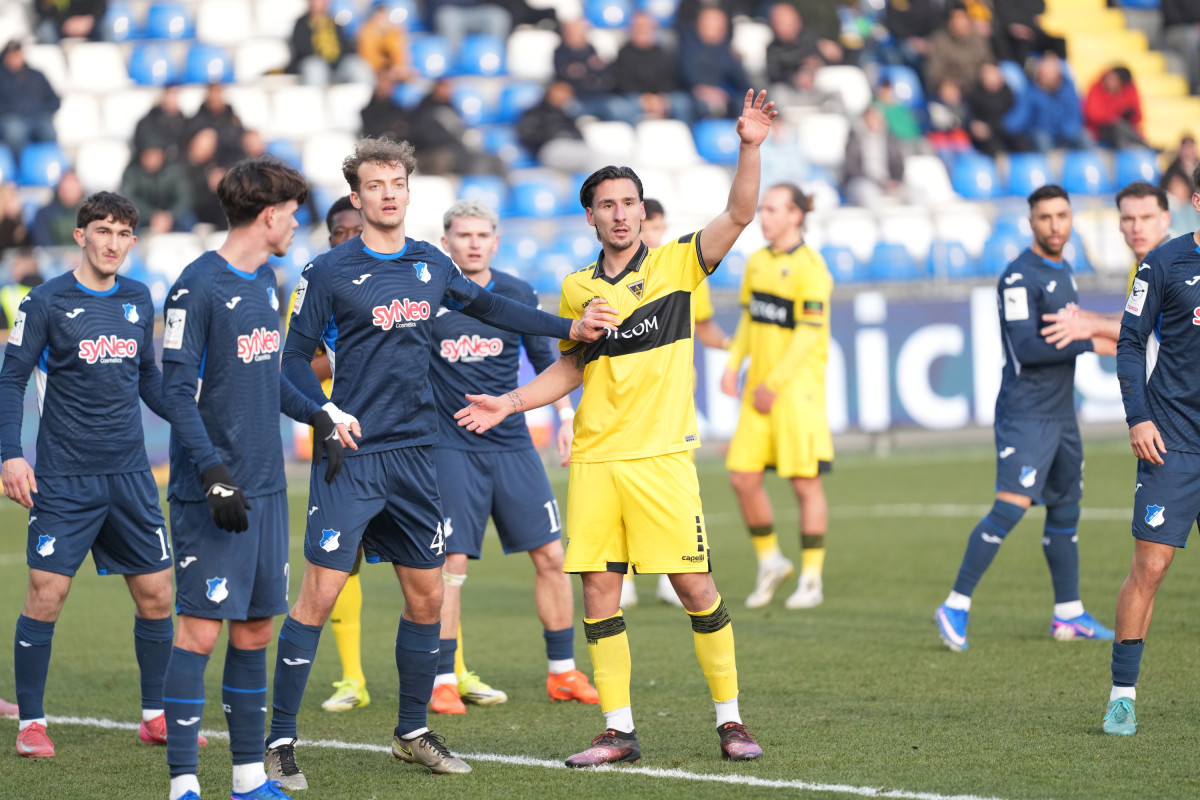 Endlich! Alemannia Aachen kehrt mit drei verdienten Punkten aus dem Kraichgau zurück. Die Mannschaft von Cheftrainer Mersad Selimbegovic zeigte einen couragierten Auftritt und ging in der ersten Hälfte durch Mika Schroers in Führung (39.). Lars Gindorf (59. & 73.) erzielte die beiden Aachener Tore nach dem Seitenwechsel. Für die TSG trafen Luka Duric (63.) per Elfmeter und Deniz Zeitler (85.).