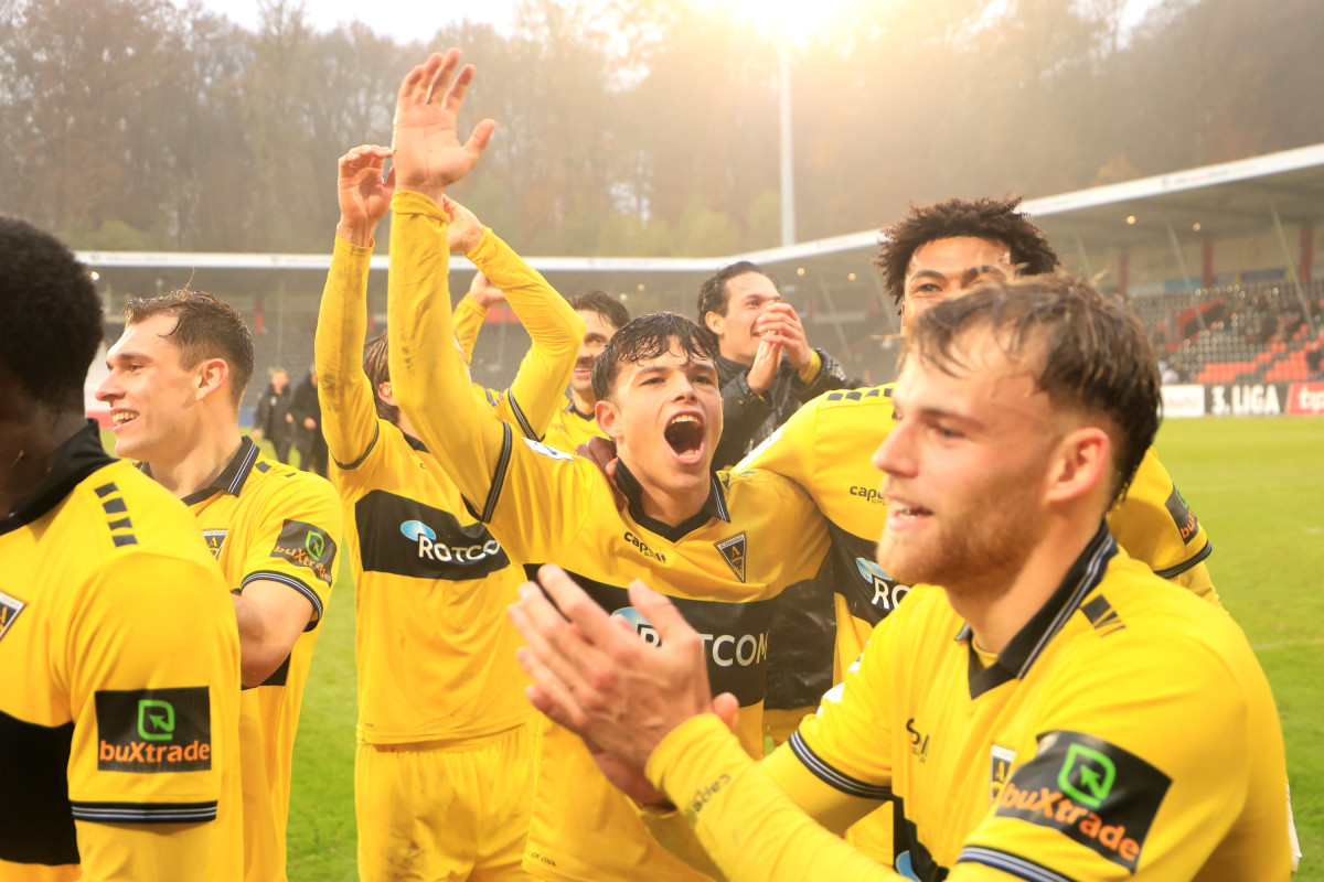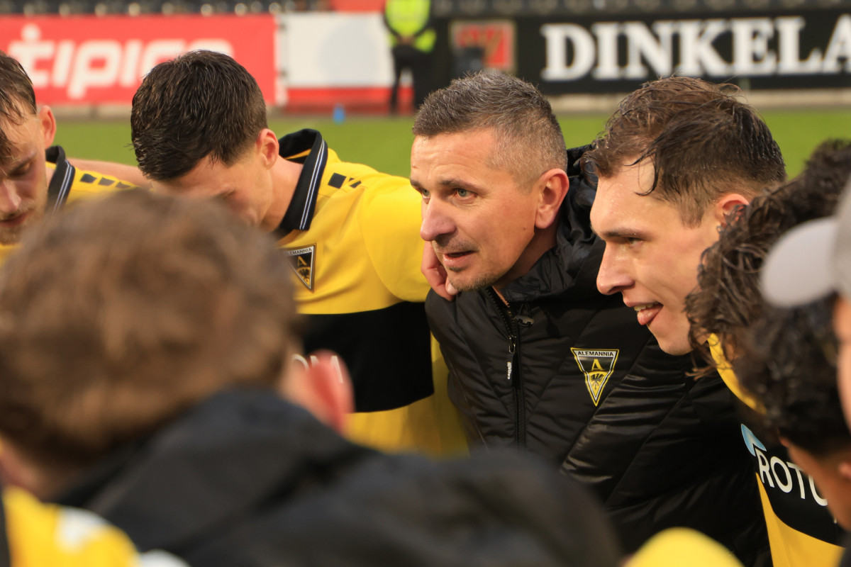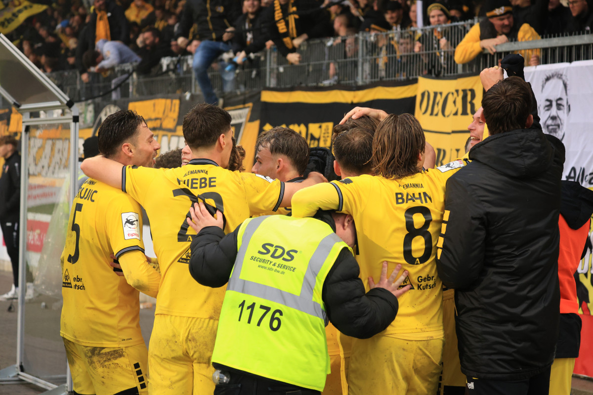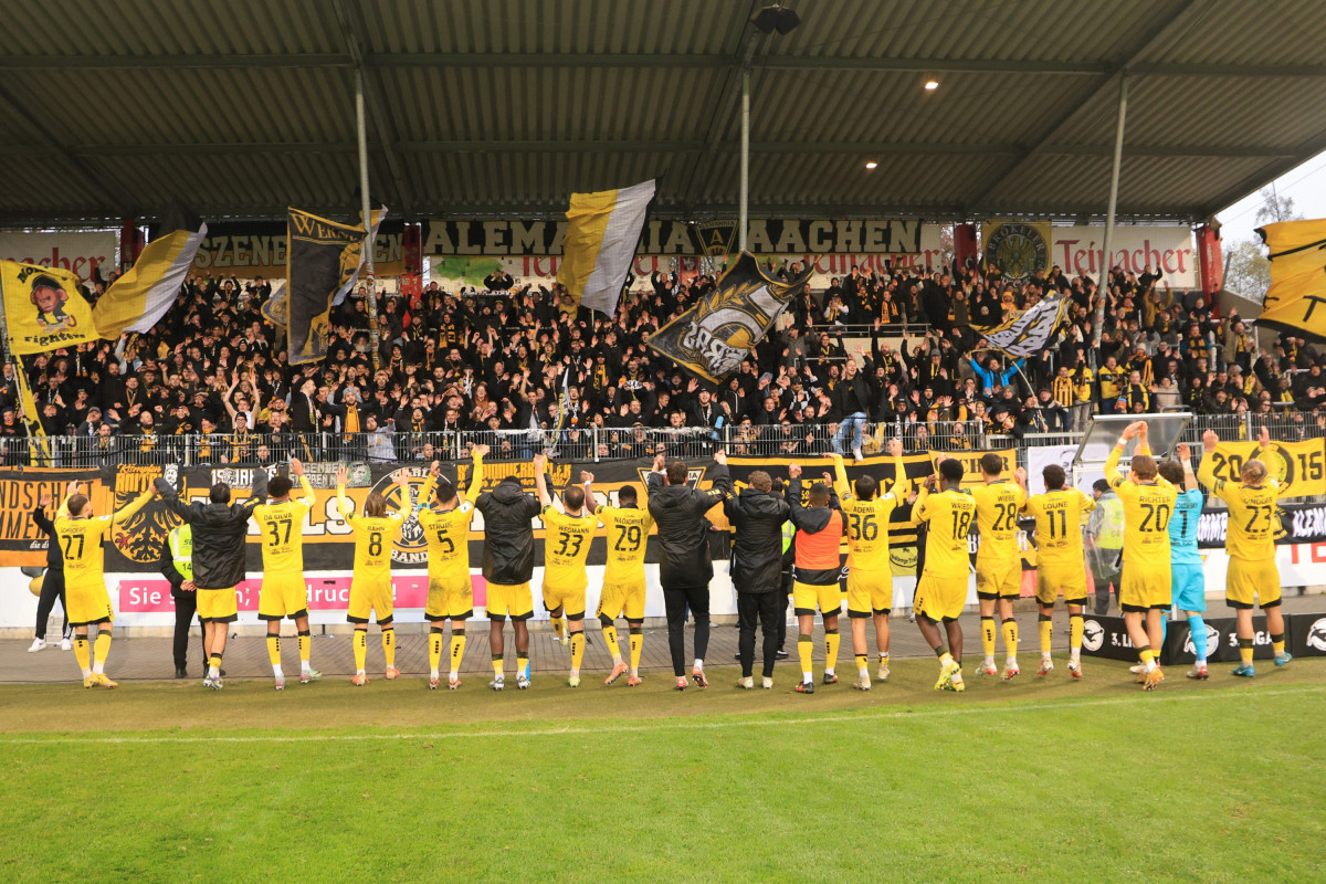 Schiedsrichter Lennart Kernchen ließ nach dem dritten Aachener Treffer noch ein wenig weiterlaufen, schickte mit seinem Schlusspfiff die Kaiserstädter per Vollsprint in die Kurve, wo sie sich vom lautstarken Anhang feiern ließen. Mit 19 Punkten und drei Siegen in Serie geht es für die Alemannia nun in die Länderspielpause. In dieser bestreiten die Aachener ein Testspiel beim VfL Vichttal und treffen zudem im Achtelfinale des Bitburger-Pokals auf den FV Bonn-Endenich.