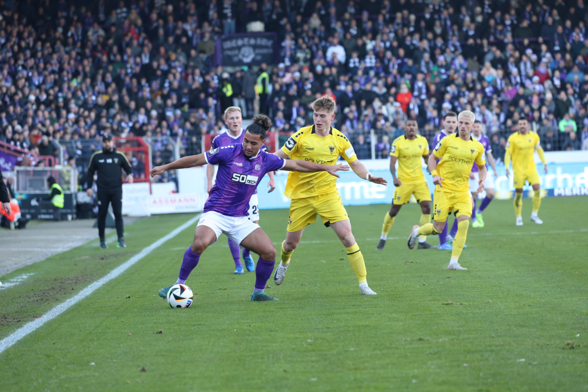 Auch, wenn sich die Tivoli-Kicker die Bälle noch nicht mit geschlossenen Augen hin und her passen können, sind sie sehr wohl in der Lage, gegen jeden Gegner zu bestehen. Das gilt auch für das Tabellenschlusslicht aus Osnabrück, mit dem es die Schwarz-Gelben am Sonntagmittag zu tun bekommen werden. „Ein schwieriger Gegner, der in einer ebenso schwierigen Situation steckt. Aus einer solchen Misere resultiert oftmals eine Trotzreaktion. Für die müssen wir bereit sein. Ich erwarte, dass wir da mit genau so viel Demut hinfahren wie nach Dresden“, fordert Backhaus, der die Partie an der stets lauten Bremer Brücke als „richtungsweisendes Spiel“ bezeichnet und mit einem „richtigen Krimi“ rechnet. Die Lila-Weißen sind Zweitliga-Absteiger, aber auch in der 3. Liga kommen sie noch nicht in den Tritt. Dazu fehlen dem Gegner um Trainer Pit Reimers mit Timo Beermann, Joël Zwarts und Dave Gnaase drei Leistungsträger gesperrt.